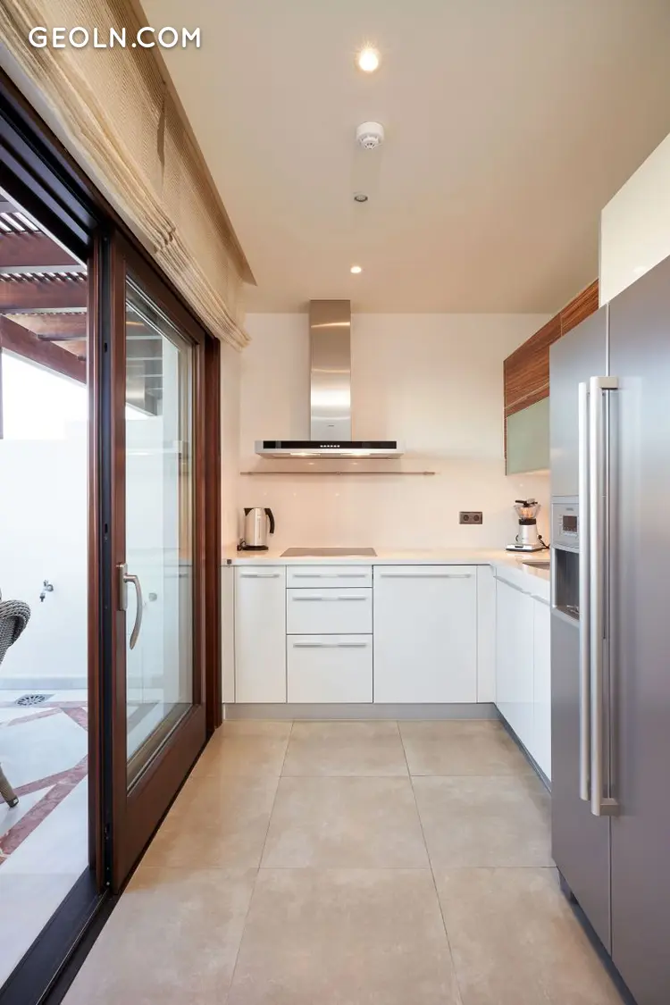 厨房旁边是一个小露台,可俯瞰大海享用早餐。