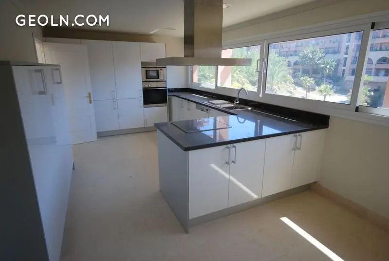 特点: 东南方向 高尔夫和山脉的壮丽景色 绿地和游泳池的景色 带烧烤和按摩浴缸的大型日光浴室 非常阳光和温暖 大客厅 设备齐全的厨房 3 间浴室中 2 间的按摩浴缸 大理石地板 由家庭自动化控制的照明系统 冷热空调 整个公寓的照明地板 电动百叶窗 带安全保护的双层玻璃 报警器 保险箱 3 个停车位 3 个杂物间
