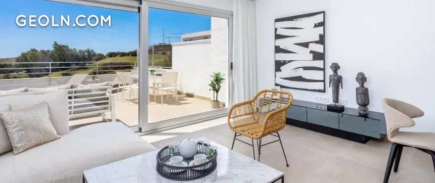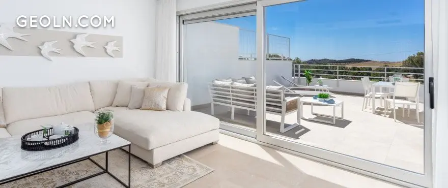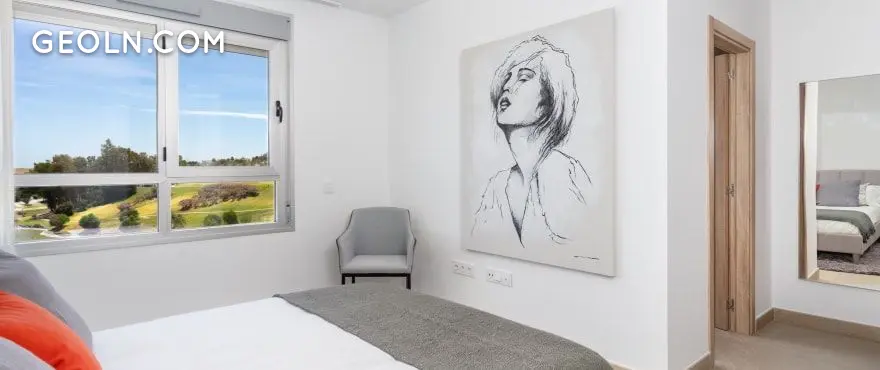 新的住宅区,享有高尔夫球场和大海的全景。由于朝南和西南方向,所有房屋的房间都非常明亮。