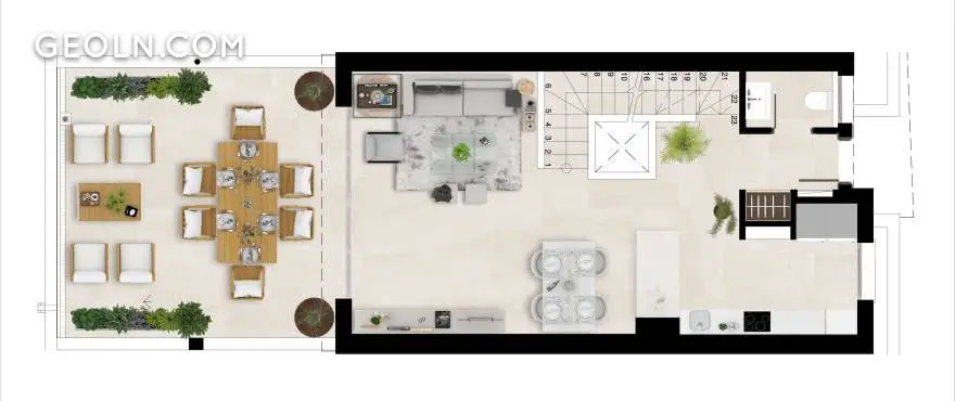 拥有舒适实用的房屋的住宅区无疑是您正在寻找的。一栋房子,您将拥有私人地下室、带设备齐全的厨房的开放式主楼层、3 间宽敞的卧室、超过 50 平方米的大型日光浴室露台和花园。