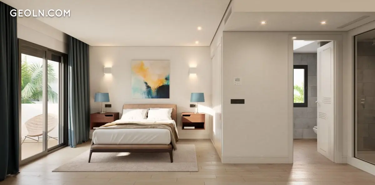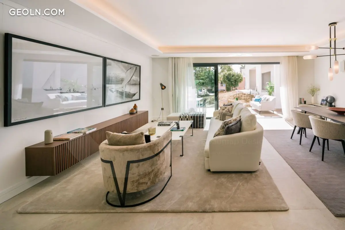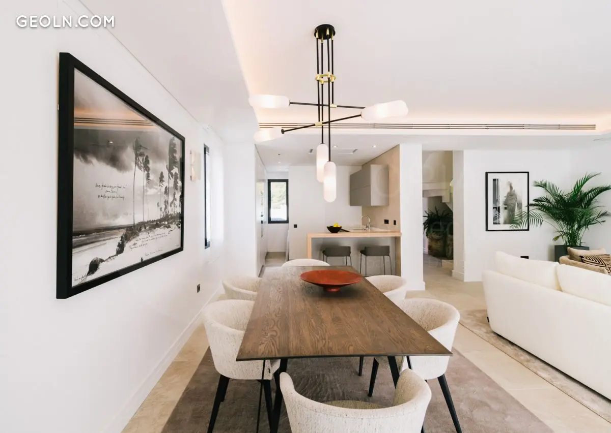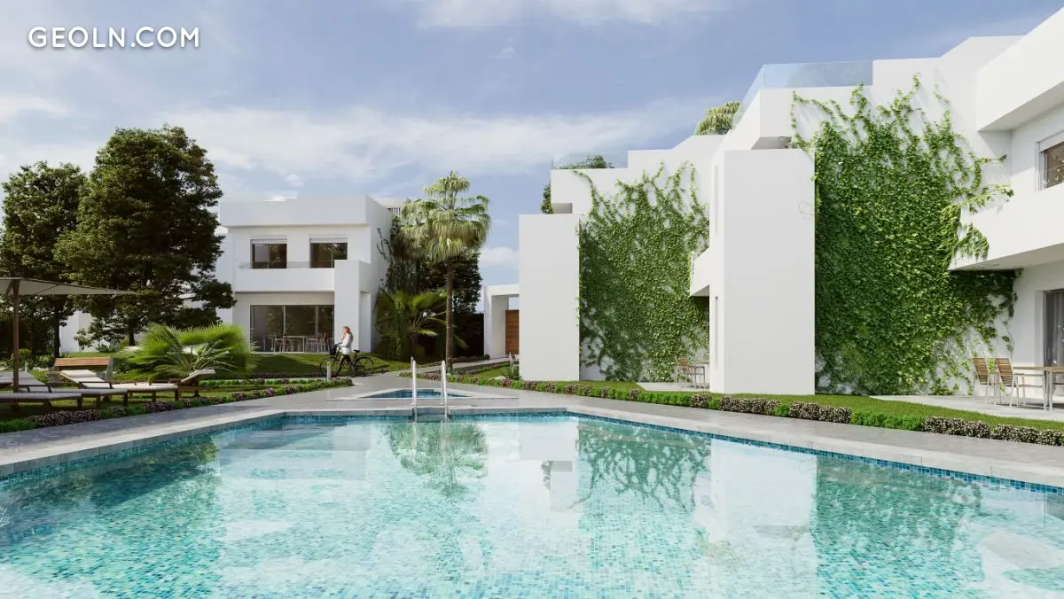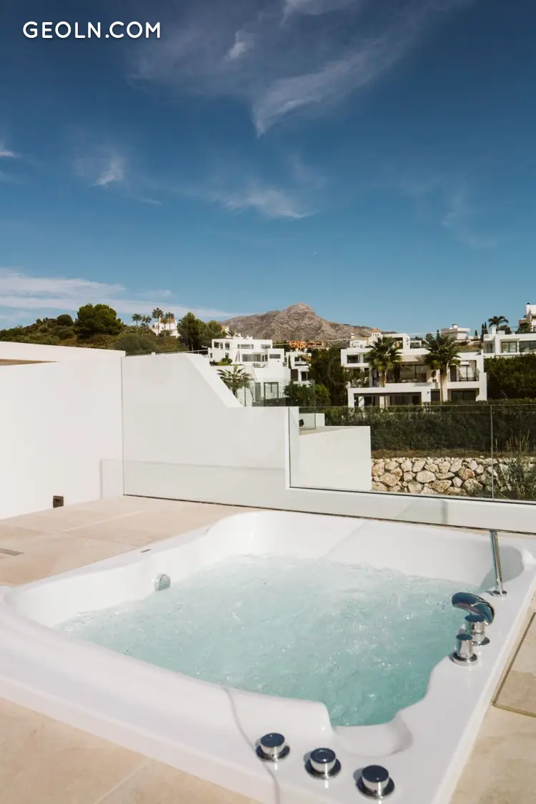 价格从 800,000 欧元起 2021 年 3 月完工 9 栋独立的独户住宅,分 3 组,带游泳池和大片绿地,俯瞰地中海,位于马贝拉的新安达卢西亚,靠近巴努斯港和高尔夫球谷 Los Naranj。s、Las Brisas 和 Aloha 是该地区最好的高尔夫球场。每栋房屋包含:3 间卧室、2 间浴室、门厅、客厅、餐厅、厨房、露台、有盖门廊、2 个停车位、洗衣房、双层高的内部楼梯、日光浴室和按摩浴缸。 封闭式住宅区:通过私人交通工具、私人道路、车库和停车场、两个行人入口、花园、花坛、公园、游泳池进入。 下层:房屋的主要入口、大厅、楼梯、开放式客厅和餐厅、户外门廊、小厨房、通往地下室的通道、洗衣房。 顶层:主卧室带套间浴室、第 2 和第 3 间卧室、浴室、双高大厅和楼梯、前后露台。 屋顶:楼梯、安装露台、带按摩浴缸的日光浴室,可俯瞰大海。