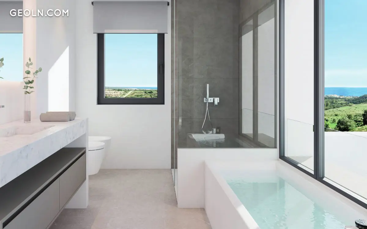 其结果是建筑师的创意工艺赋予了设计的纯粹性,纯白色的线条与高贵的材料相结合。在这些时尚、现代的住宅中,内部和外部的形式和功能完美平衡,吹着海风,提供宽敞的露台,您可以享受 320 度的阳光。一年中的日子和晚上的娱乐活动。