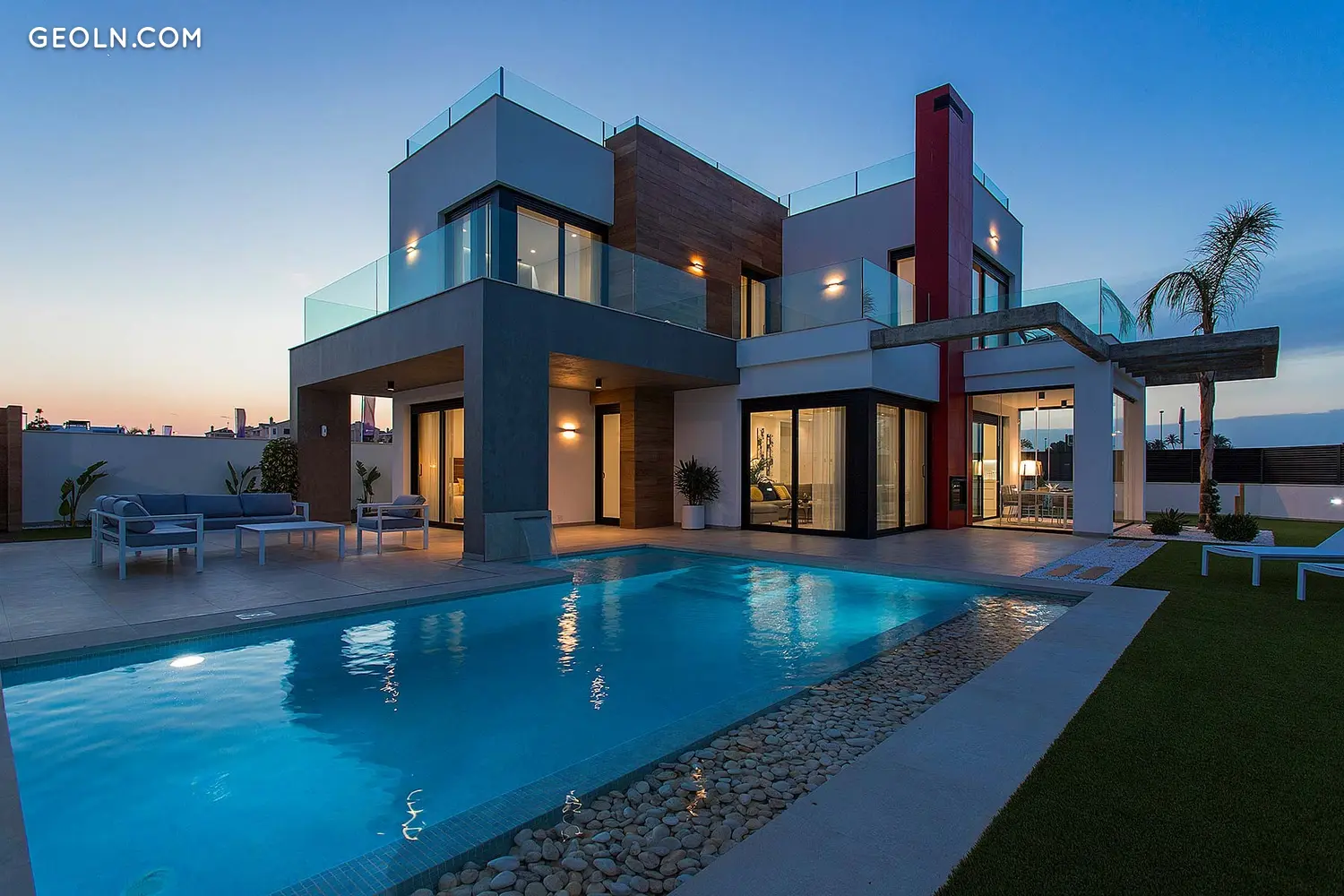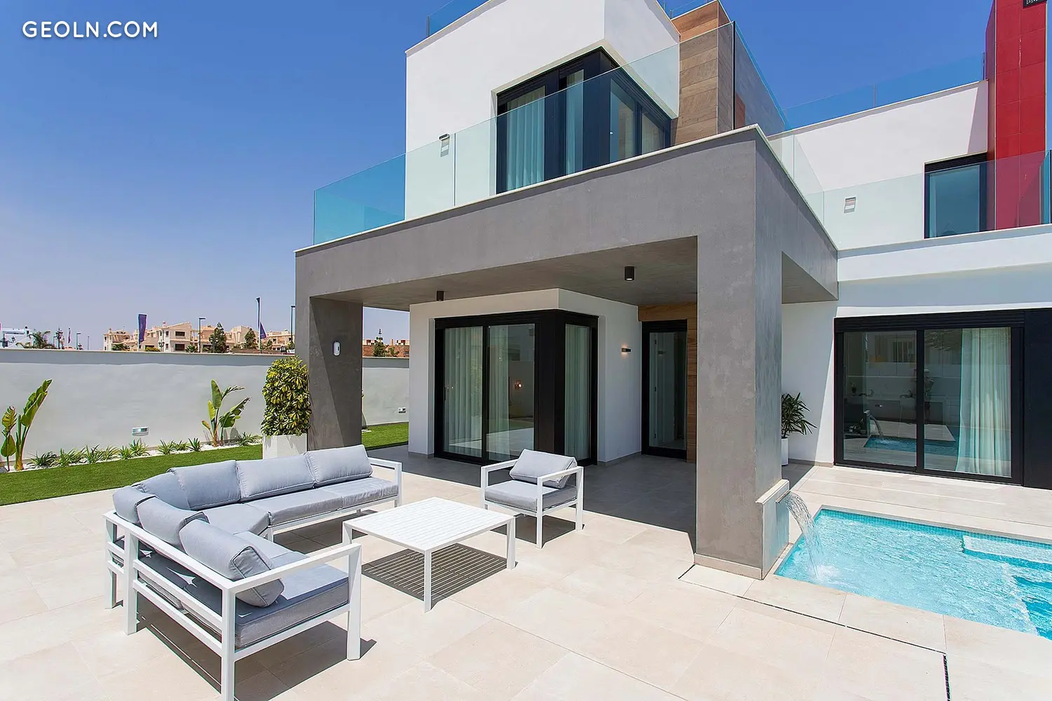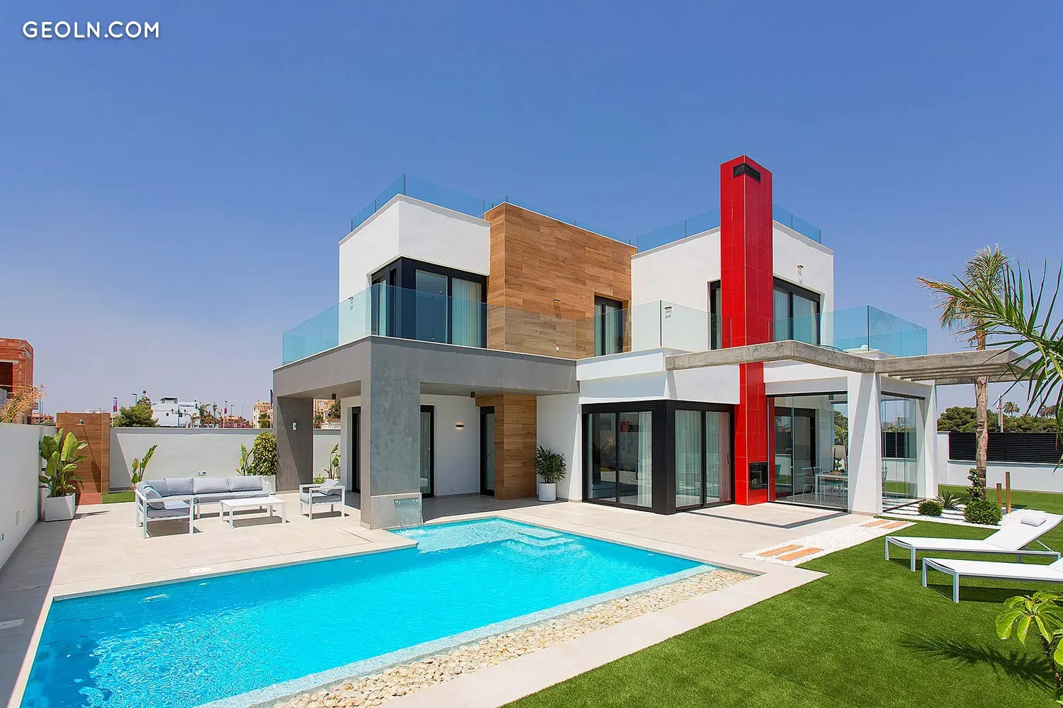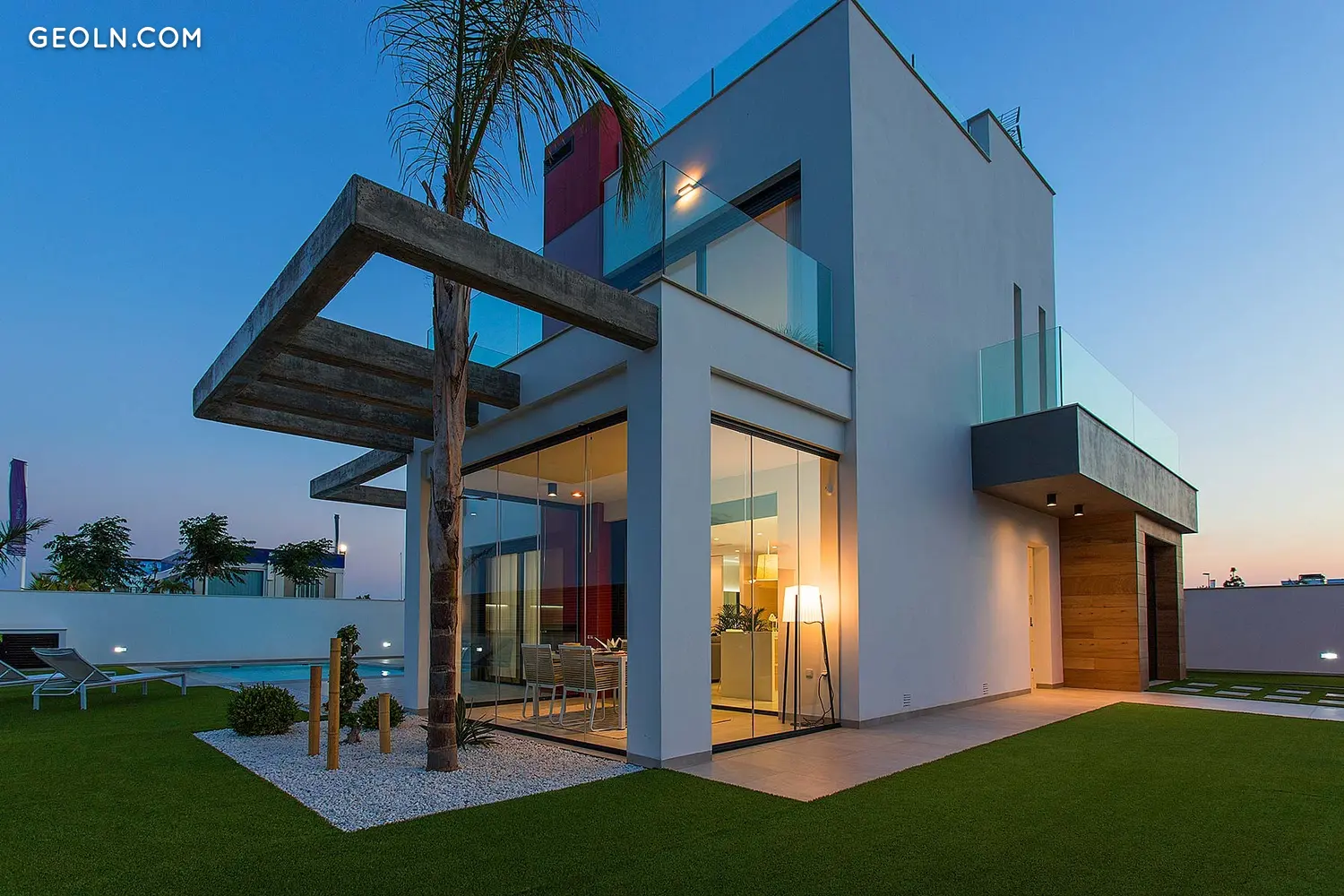 Blue Swing 是一组豪华别墅,距离位于 Los Alcazares 的 Playa del Carmoli 和 La Serena 高尔夫俱乐部不到 500 米。 Blue Swing 有两种房屋模型:3 间卧室的马德拉岛和 4 间卧室的伊维萨岛。 专为最苛刻的客户而设计,两种独立别墅模型都具有卓越的设计和品质,结合了现代和实用的风格以及对景观和方向的仔细研究。用于建造高能效房屋的解决方案。 所有房屋均配有厨房、家具和设备齐全的电器、带洗衣机和烘干机的洗衣房、车库、瓷地板、带淋浴屏的浴室、家具和地暖,矿山、空气热空气、空调管道安装、室内 LED 照明和外部、控制照明、空调和百叶窗的家庭自动化系统等。. 此外,450多米的地块出租,带有精心打理的花园和私人游泳池。
