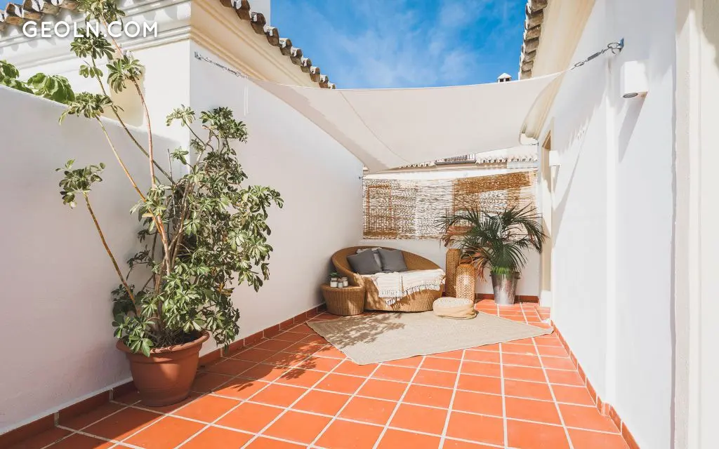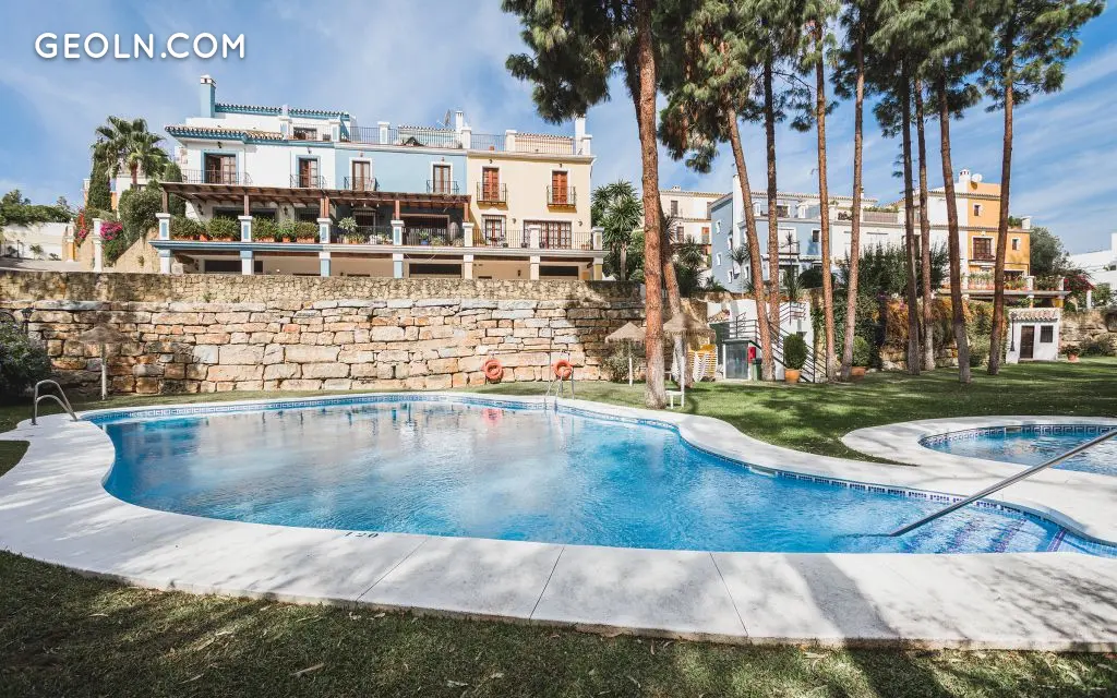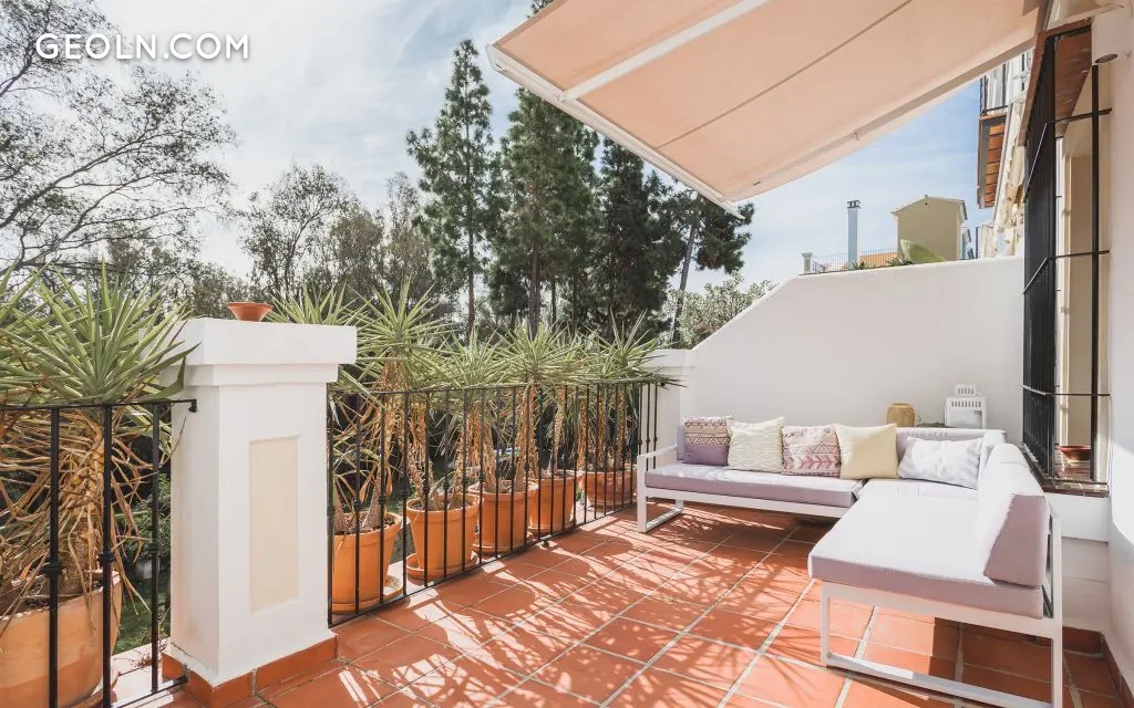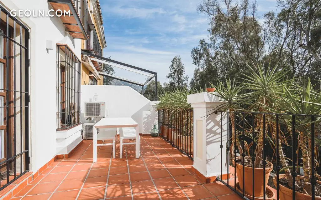 位于马贝拉黄金城的联排别墅 Solana de Nagüeles 精致、全面翻新的联排别墅,这是一个独特的封闭式社区,位于美丽的山坡上,享有大海和 La Concha 山的壮丽景色,拥有郁郁葱葱的花园、喷泉和瀑布,公共游泳池和儿童小游泳池。 .这所房子朝东南,第一层包括:入口处的露台;带壁炉的客厅/饭厅通向东南朝向的露台;设备齐全的开放式厨房;客用厕所。二楼:两间带浴室的卧室和维多利亚风格的阳台。上层:主卧室可通往私人户外露台。下层:独立公寓,包括一间带厨房的客厅、一间卧室和一间设备齐全的浴室。有旅游证。游泳池周围修剪整齐的花园提供隐私和一些来自明亮阳光的阴凉处,巧妙地种植了高大的松树。迷人的房产,适合一年四季的奢华生活。这个住宅区就在黄金地带之上,交通便利,步行即可到达著名的 Puente Romano Beach Resort & Spa。从这里您可以轻松进入 AP-7 高速公路。马贝拉和巴努斯港距离酒店有 10 分钟路程。