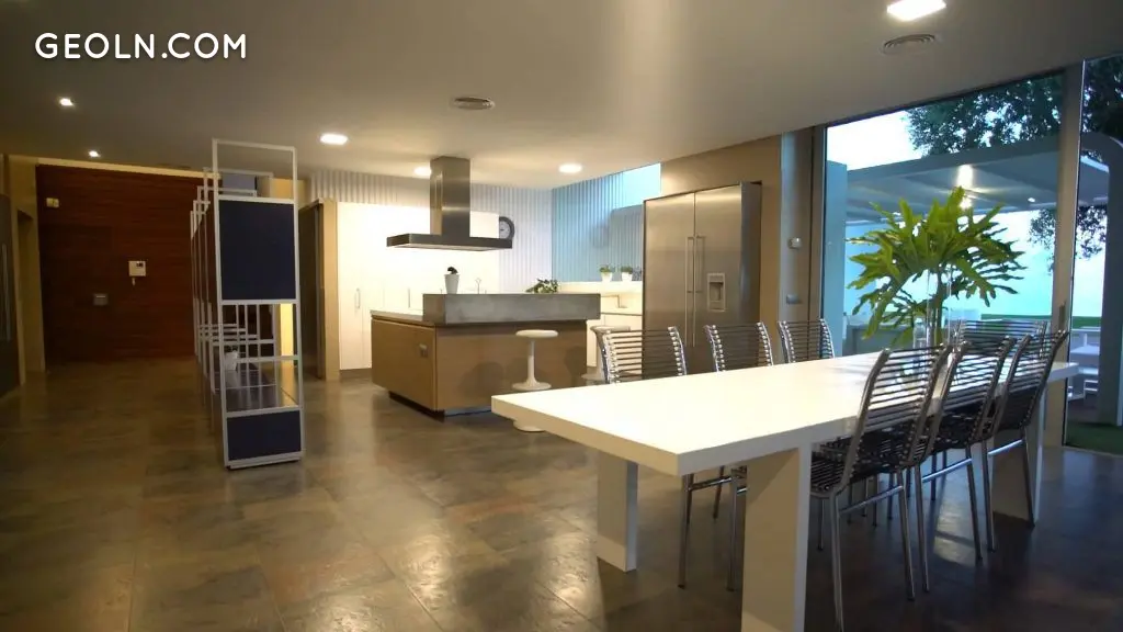 主楼层 通过独立的自动门进入小区。 通过带遥控器的车库门进入汽车。 通过木门进入房子。 连接两层楼的宽敞大厅。中央覆层的立面配有侧窗,您可以从中欣赏到花园的美景。 带大窗户的开放式厨房。 主卧室带步入式衣橱,带热水浴缸的套间浴室通过木质走道与健身房相连。 宽敞的走廊设有许多侧衣柜、三间明亮的大卧室和两间浴室。 外部:带按摩浴缸休息区的带顶棚和露天露台。带吊床平台的游泳池、热带花园和休息区 封闭式两车位车库、储藏室和篮球场。