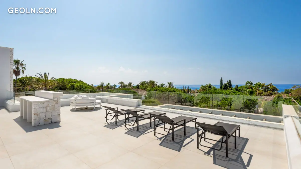 我们很高兴提供这座独特的 4 卧室豪华别墅,距离马贝拉一些最好的海滩仅 600 米。 这座全新的现代住宅位于一个非常理想的地区 - 马贝萨。这座宽敞的建筑建于两层楼和一个地下室,位于面积超过 1200 平方米的最大地块之一。 一楼包括一个令人印象深刻的入口大厅,带有客用卫生间和通往所有楼层的独立电梯;宽敞的客厅/饭厅设有可俯瞰露台和游泳池的双高大窗户。起居区分为两侧的壁炉;从用餐区出发是一个开放式的设计师厨房,带有早餐吧和独立的杂物间。厨房还可以直接通往露台和烧烤区。这一层还有一个独立的多功能区,非常适合用作电视室或酒吧。 顶层包括一间带独立更衣室的漂亮主卧室和带独立淋浴间和设计师浴缸的主浴室,位于令人印象深刻的 V 形窗户中;在这一层还有第二间主卧室和两间较小的套房卧室;楼梯间俯瞰下方气势恢宏的客厅,透过窗户俯瞰大海。 在地下室,您会发现一个大车库;巨大的多功能厅,非常适合变成酒吧、娱乐区或电影院;浴室;杂物间和园艺工具储藏室等。这座现代别墅还设有一个90多平方米的大型屋顶日光浴室,可欣赏四面八方的全景。可通过电梯或内部楼梯进入,日光浴室非常适合在户外或在地中海星空下放松! 在外面,您会发现大型热带花园和无边泳池。 整个房子的地暖;冷热空调;高水平完整的家庭系统;活火焰壁炉;设计师厨房;高品质的灯具。