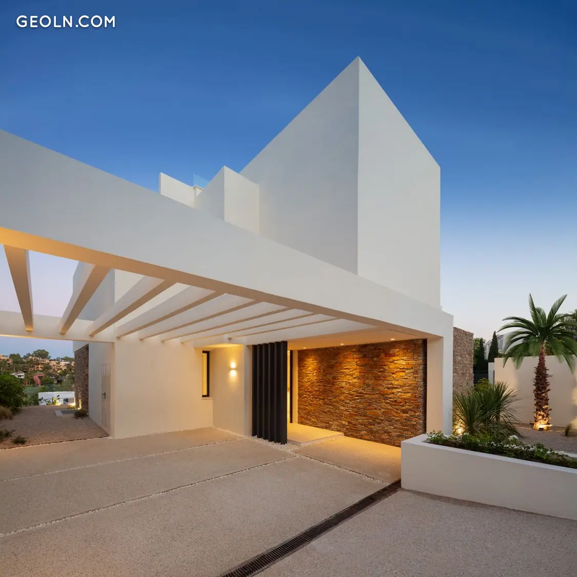 大窗户最大限度地利用光线,将室内外空间无缝连接,使别墅的布局更加开放。