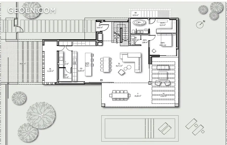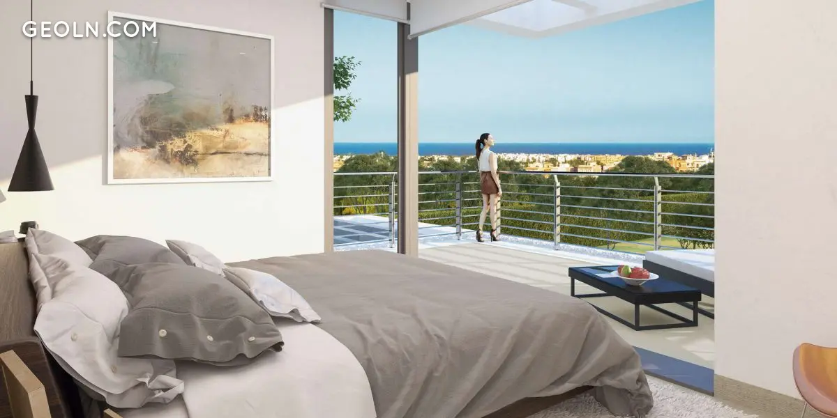 该建筑群由现代别墅组成,这些别墅位于宽敞的地块上,享有周围群山的壮丽景色以及地中海、直布罗陀和非洲的全景。这些房子的设计理念是创造一个现代化的生活空间,一个开放式的用餐区通向一个设备齐全的现代厨房。从客厅通过落地推拉门进入宽敞的露台和户外用餐区,通往私人园景草坪和花园,私人游泳池创造了户外之间的无缝过渡。室内和室外空间。