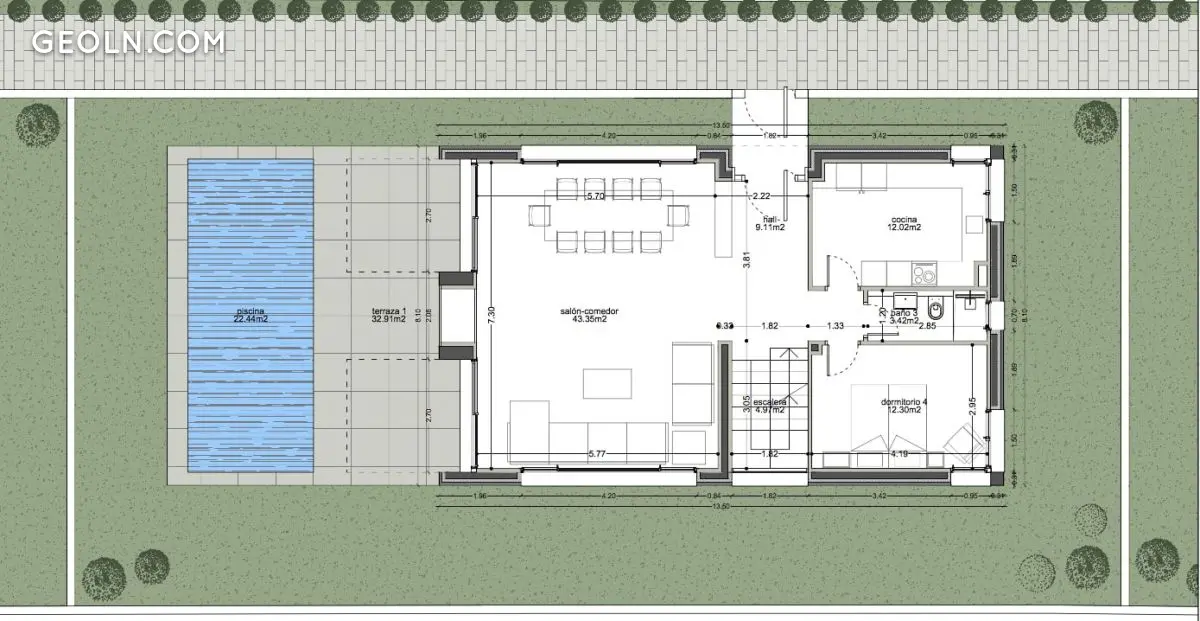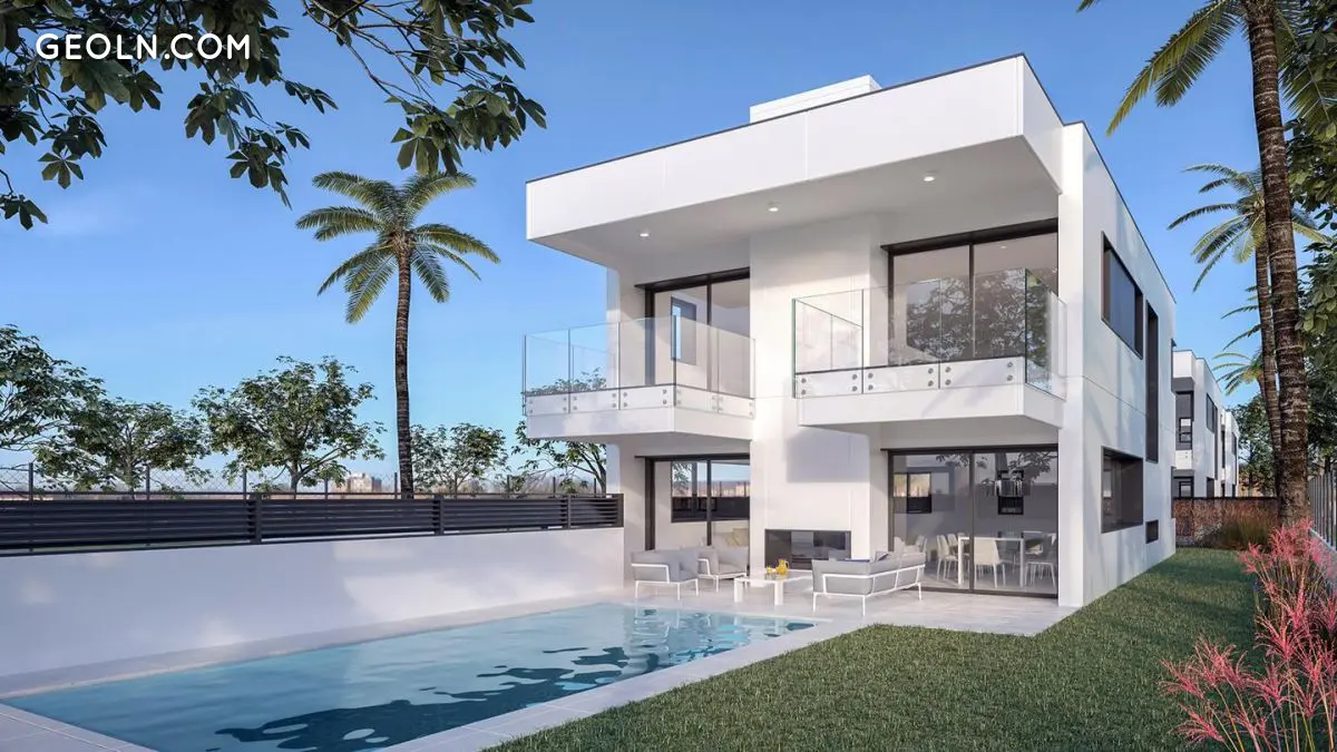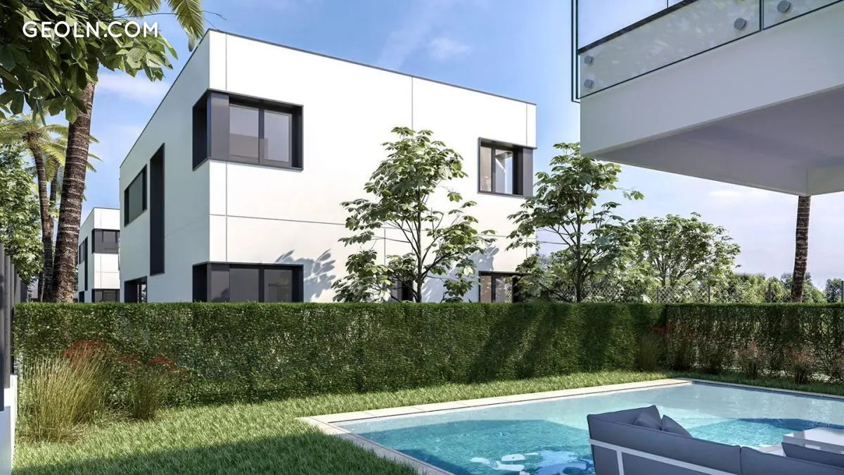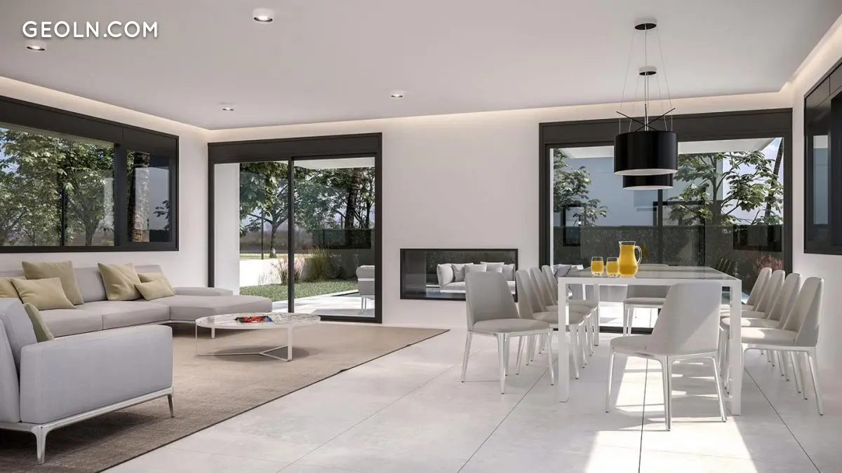 干净的现代线条、高高的天花板和大全景窗户提供充足的自然光线,而优雅的楼梯连接着住宅的三层楼。宽敞的开放式客厅与豪华的 Siematic 厨房相连(提供多种饰面)以及带防滑瓷砖的宽敞露台,可在泳池旁提供安全的环境。
