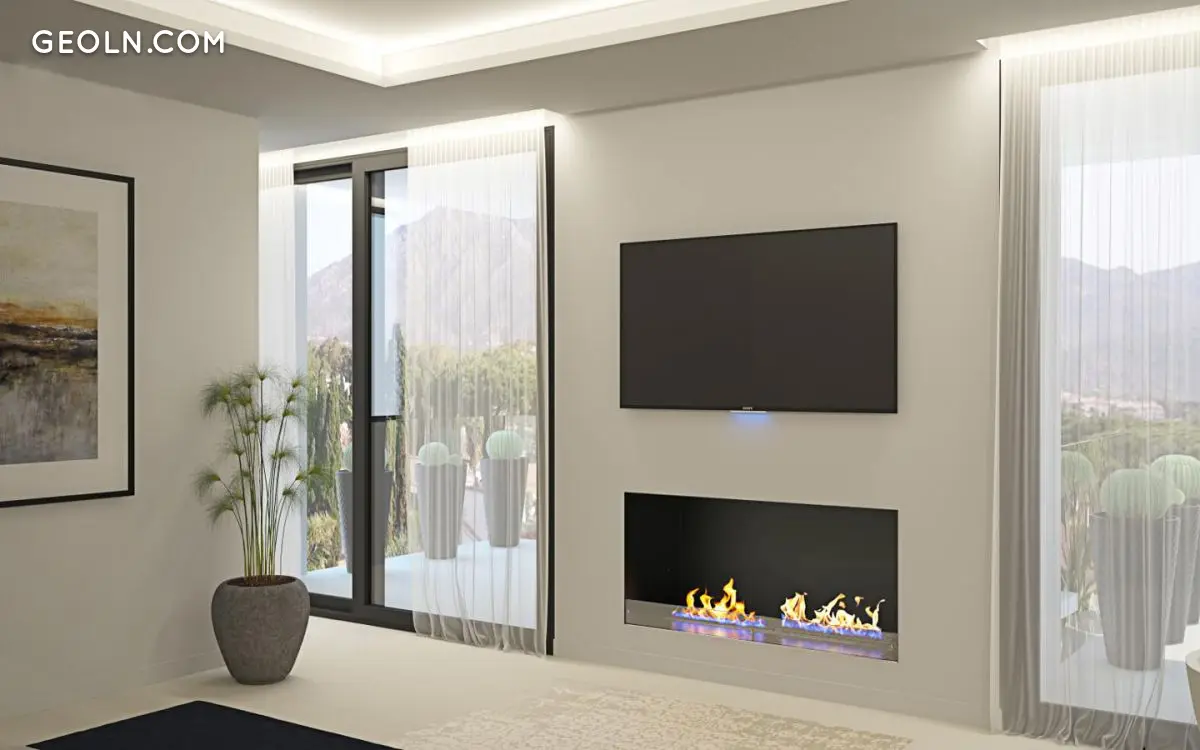 房屋的一个特色是现代室内外燃气壁炉,不仅温暖舒适,而且视觉享受。