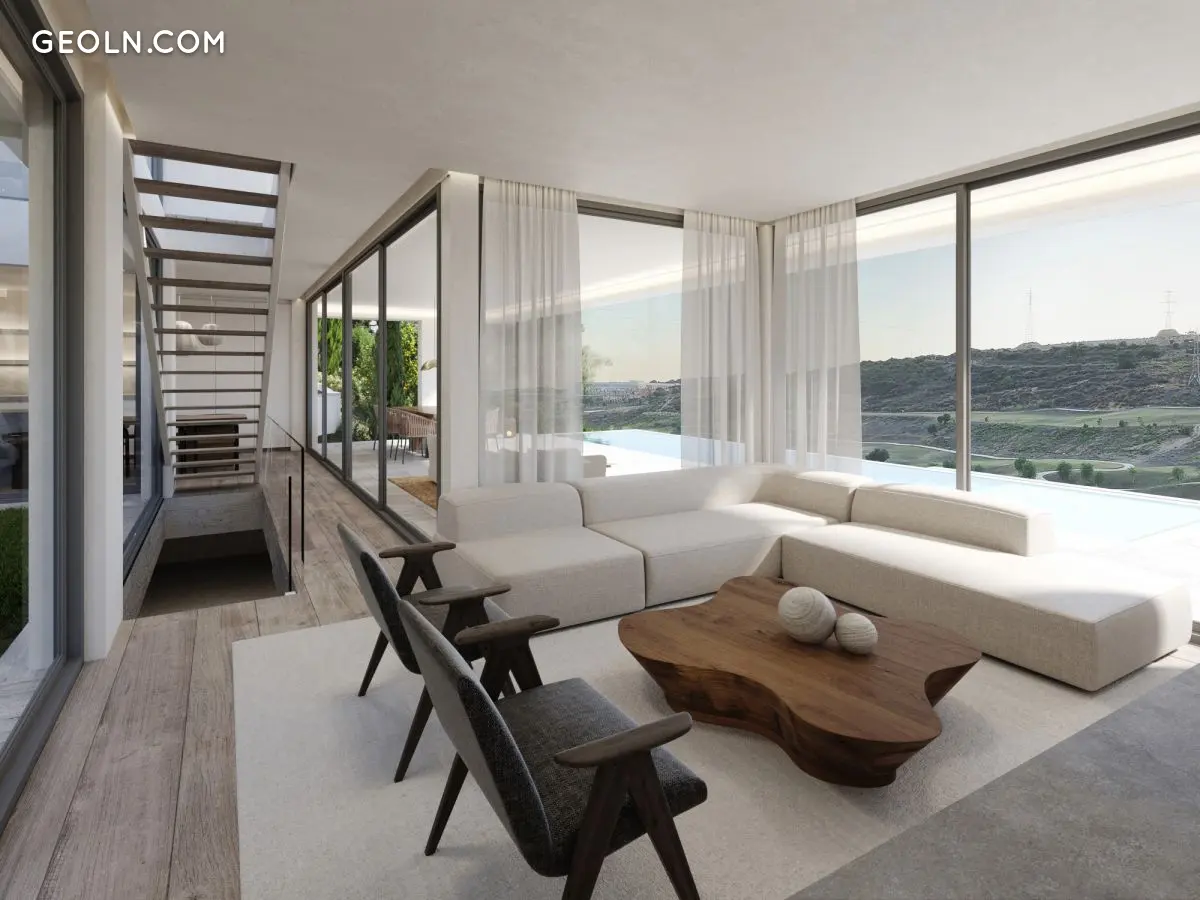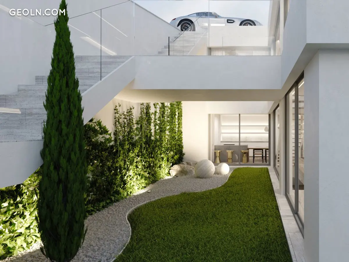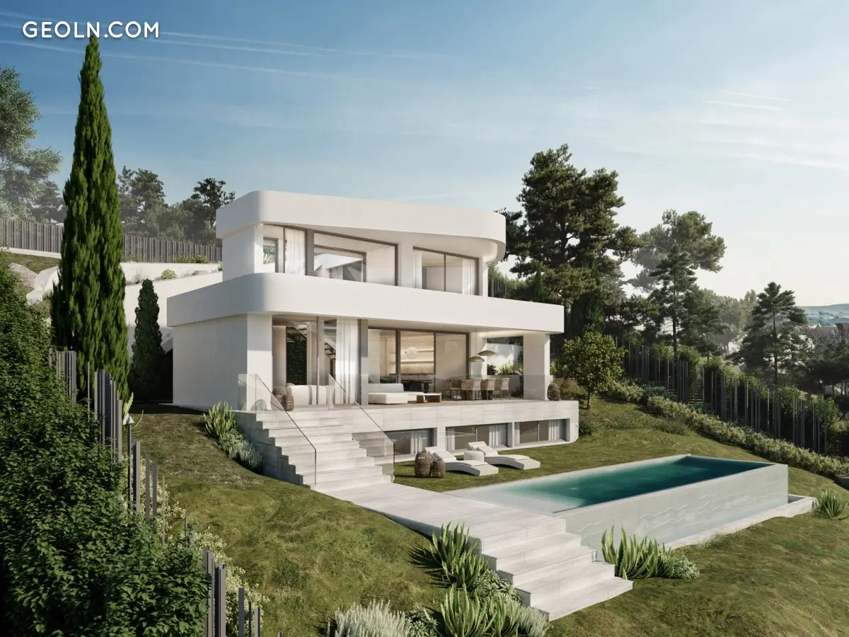 埃斯特波纳别墅 非常私人的现代别墅,俯瞰高尔夫球场,位于埃斯特波纳著名的高尔夫球场,距离所有设施和海滩仅几分钟车程。这座西南向的别墅与景观完美融合,由三层组成:通往入口的宏伟舒适庭院;宽敞的开放式客厅,带用餐区和享有美景的厨房;客用厕所;储藏室;进入一个维护良好的带无边泳池的花园。二楼:一间巨大的主卧室,可通往享有高尔夫球场壮丽景色的露台。较低层,自然采光:另一间带浴室的卧室;两间带共用浴室的卧室;设备和仓库。可以在较低楼层拥有一间卧室和一间健身房(价格相同)或三间带浴室的卧室(590,000 欧元)。距直布罗陀机场仅 60 分钟路程,距马拉加国际机场 45 分钟路程。预计完成日期:2021 年年中。