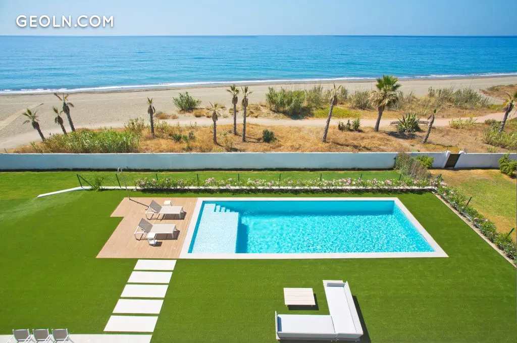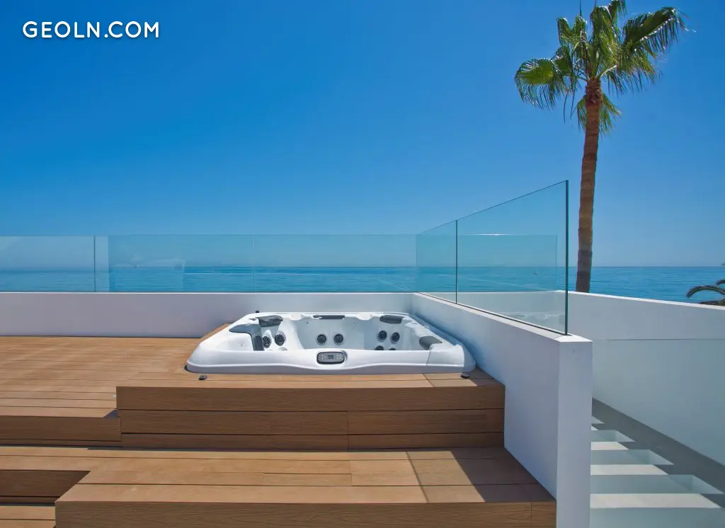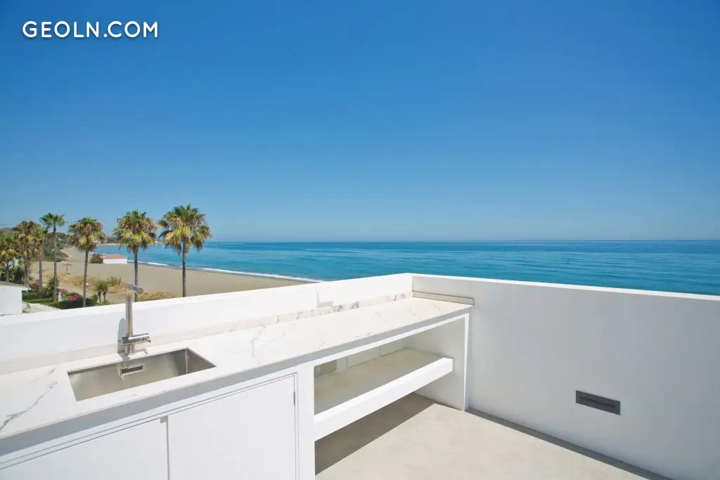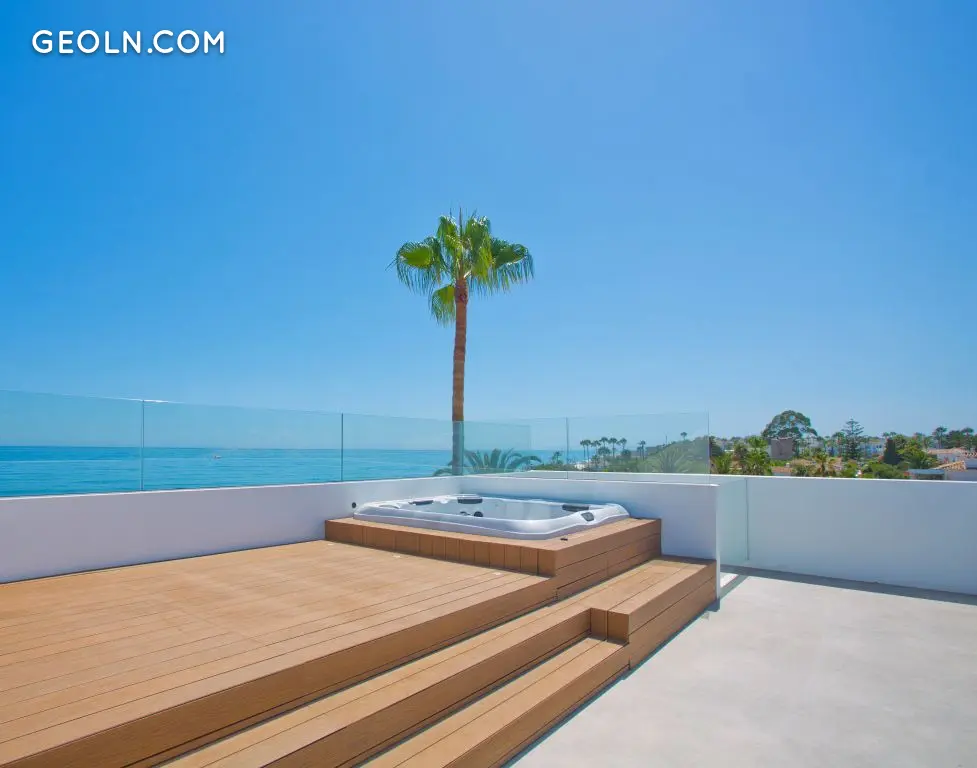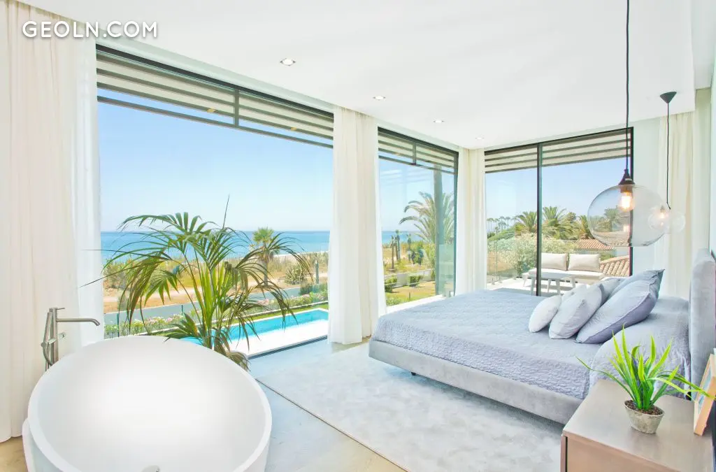 独特的现代 4 层设计师海滨别墅,位于死胡同,可直接通往新黄金地带的海滩。 这座交钥匙别墅采用独特的现代风格建造,享有大海、直布罗陀和地中海的美丽景色。 高高的天花板和宽敞的开放式区域充满自然光,通过全长全景窗户射入,营造出和谐的室内空间。 来自比利时开发商的交钥匙工程,质量最高,保证最大。内部可以根据您的个人要求进行修改。 主要特点 5 间带连接浴室的卧室 带更衣室和私人露台的主卧室 宽敞的开放式客厅 位于底层的独立更衣室。 设备齐全的厨房和浴室 带按摩浴缸、休息区和夏季厨房的屋顶露台 加热地板 所有楼层的电梯 带温水游泳池和桑拿浴室的室内水疗中心 室外咸水无边泳池 修剪整齐的花园 车库2 辆