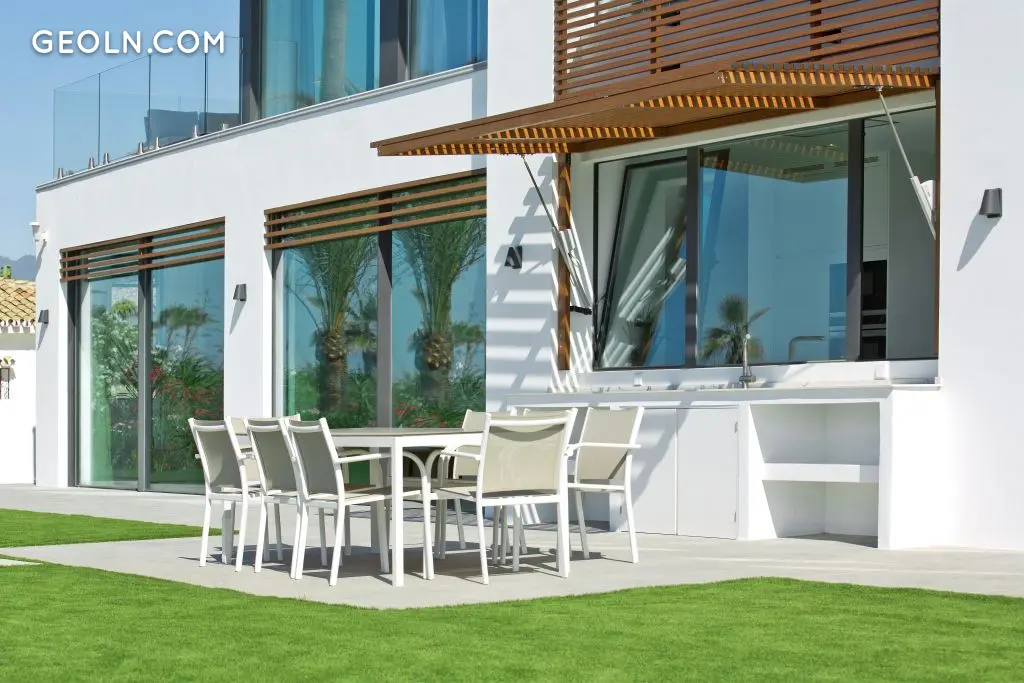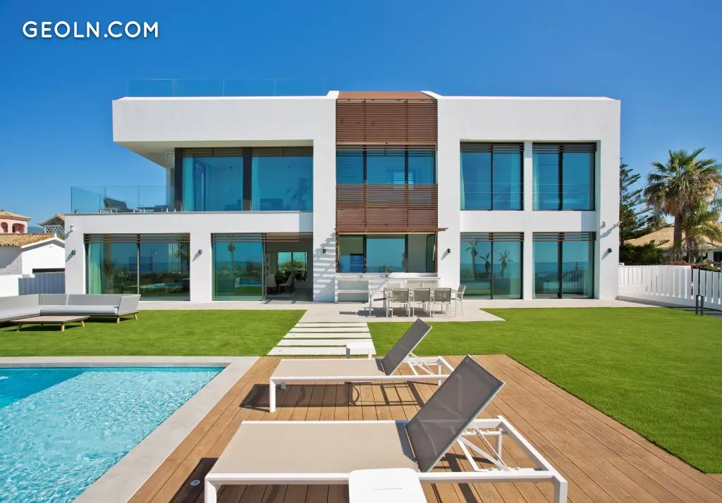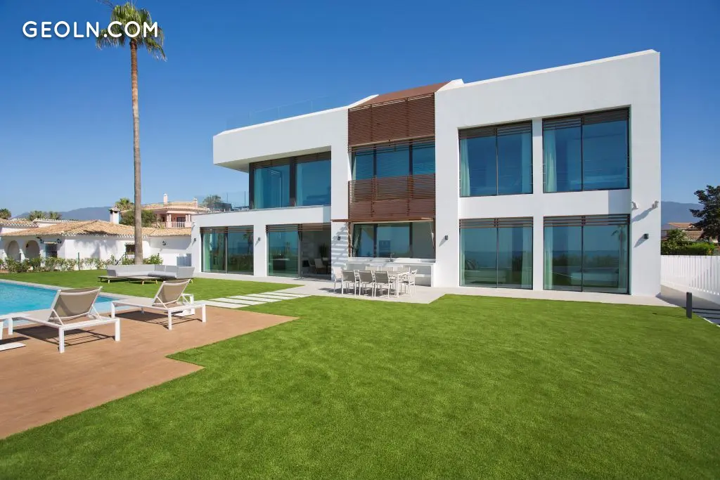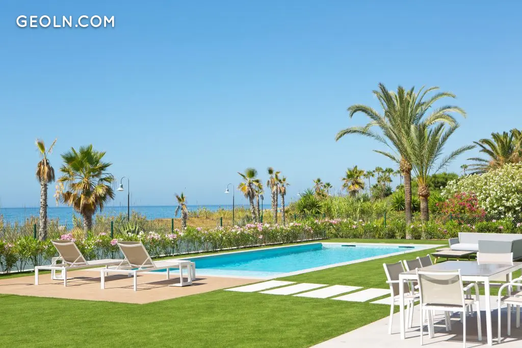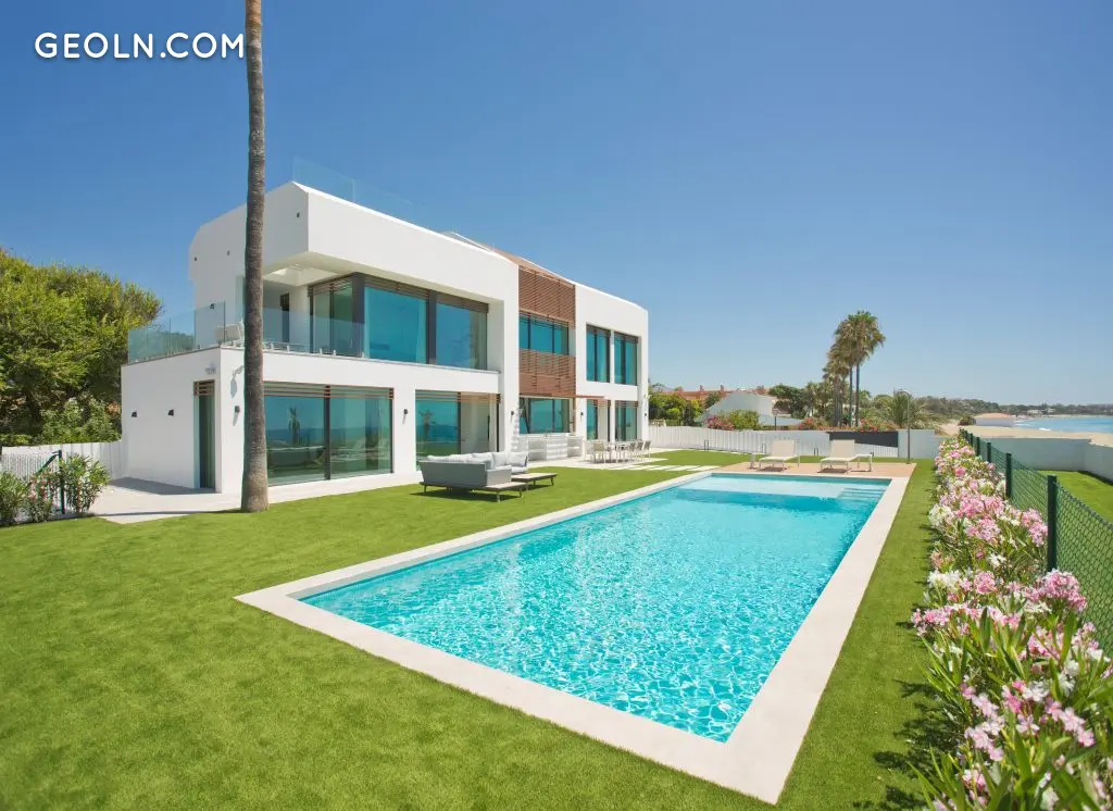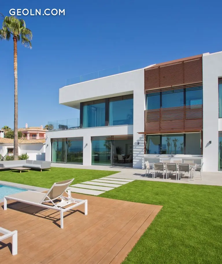 独特的现代 4 层设计师海滨别墅,位于死胡同,可直接通往新黄金地带的海滩。 这座交钥匙别墅采用独特的现代风格建造,享有大海、直布罗陀和地中海的美丽景色。 高高的天花板和宽敞的开放式区域充满自然光,通过全长全景窗户射入,营造出和谐的室内空间。 来自比利时开发商的交钥匙工程,质量最高,保证最大。内部可以根据您的个人要求进行修改。 主要特点 5 间带连接浴室的卧室 带更衣室和私人露台的主卧室 宽敞的开放式客厅 位于底层的独立更衣室。 设备齐全的厨房和浴室 带按摩浴缸、休息区和夏季厨房的屋顶露台 加热地板 所有楼层的电梯 带温水游泳池和桑拿浴室的室内水疗中心 室外咸水无边泳池 修剪整齐的花园 车库2 辆