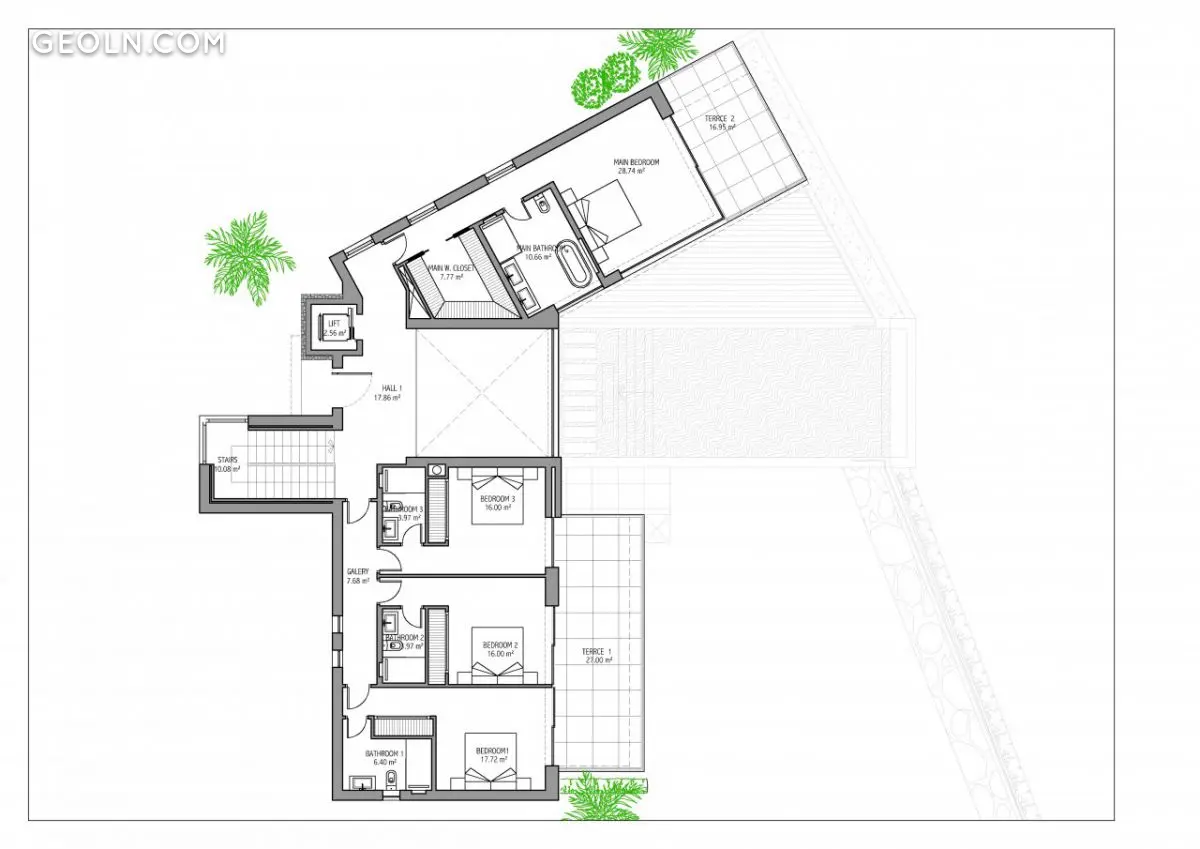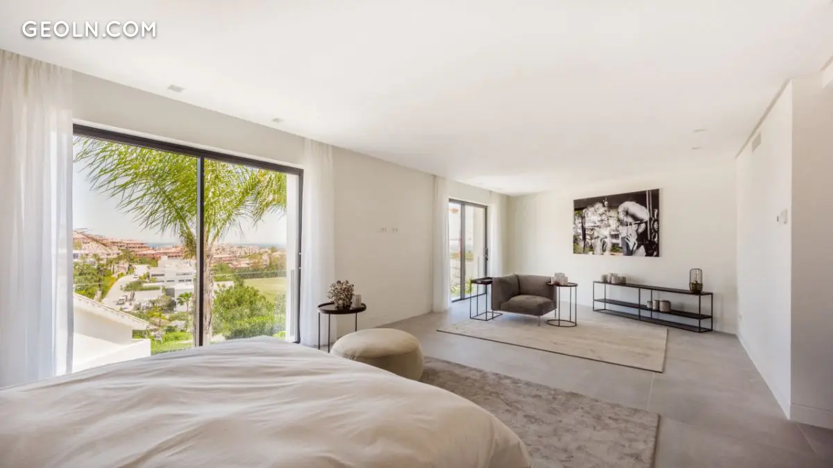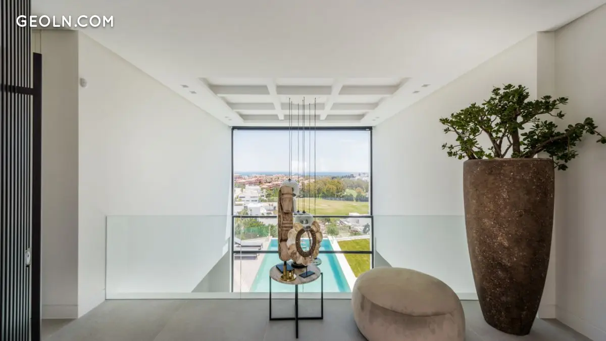 一楼的入口将提供别墅最令人惊叹的特色之一,通过带双层天花板的全景窗户欣赏壮丽的景色。一楼设有三间带连接浴室的卧室,可通往阳台并享有壮丽景色。电梯位于前门旁边,可通往所有楼层。