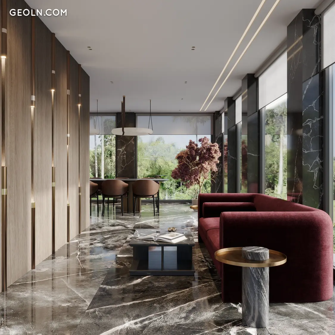 在综合体内部,您将发现独特的社交空间——图书馆,在这里您可以手握书本,享受宁静的氛围,沉浸在奢华与美丽之中。