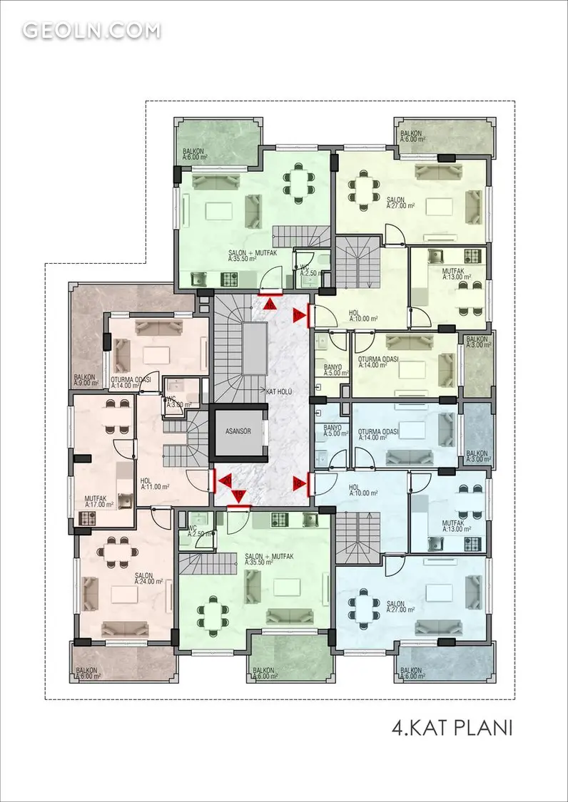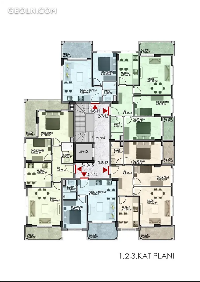 公寓 1 卧室 43 平方米,位于土耳其阿拉尼亚