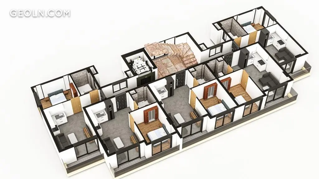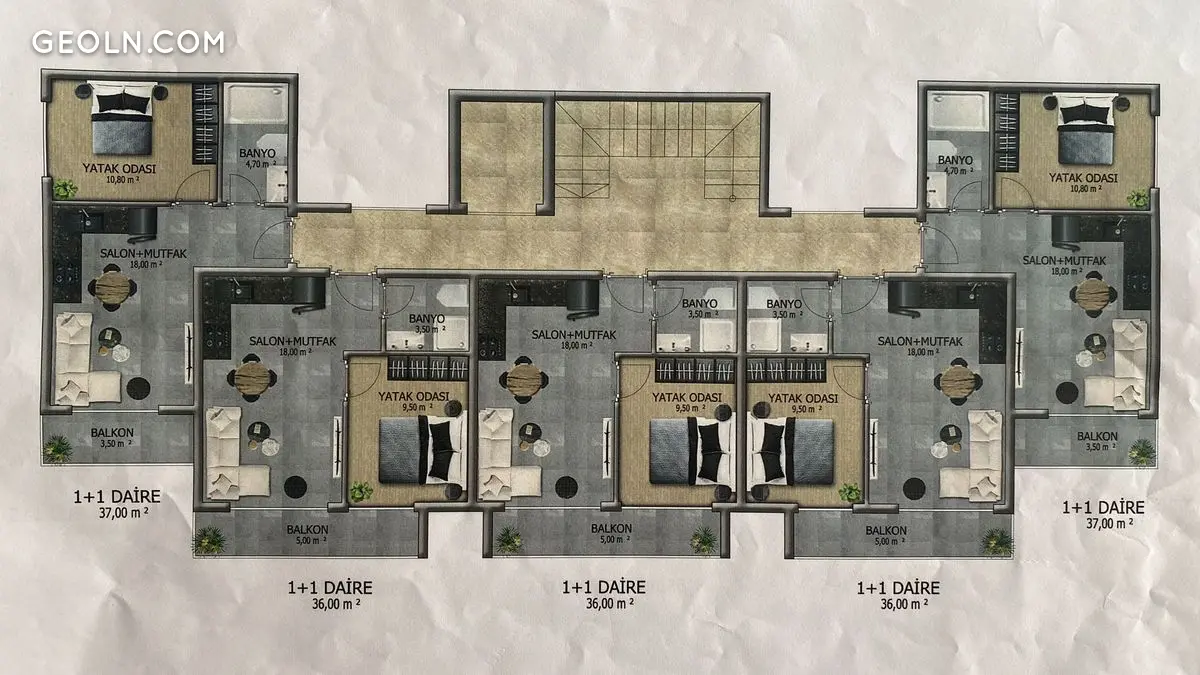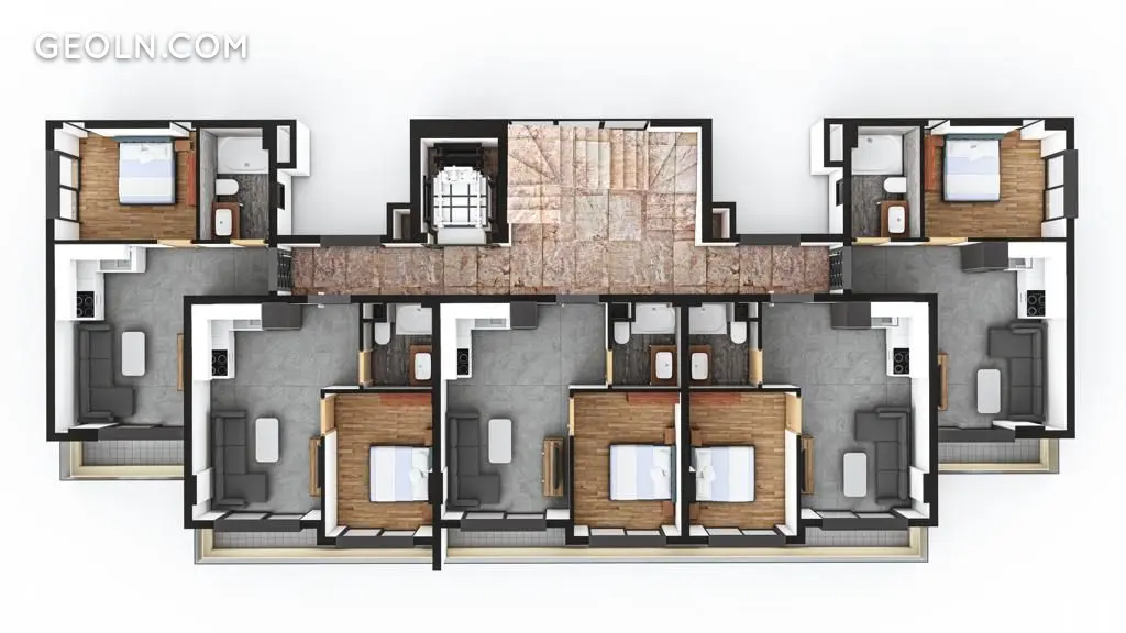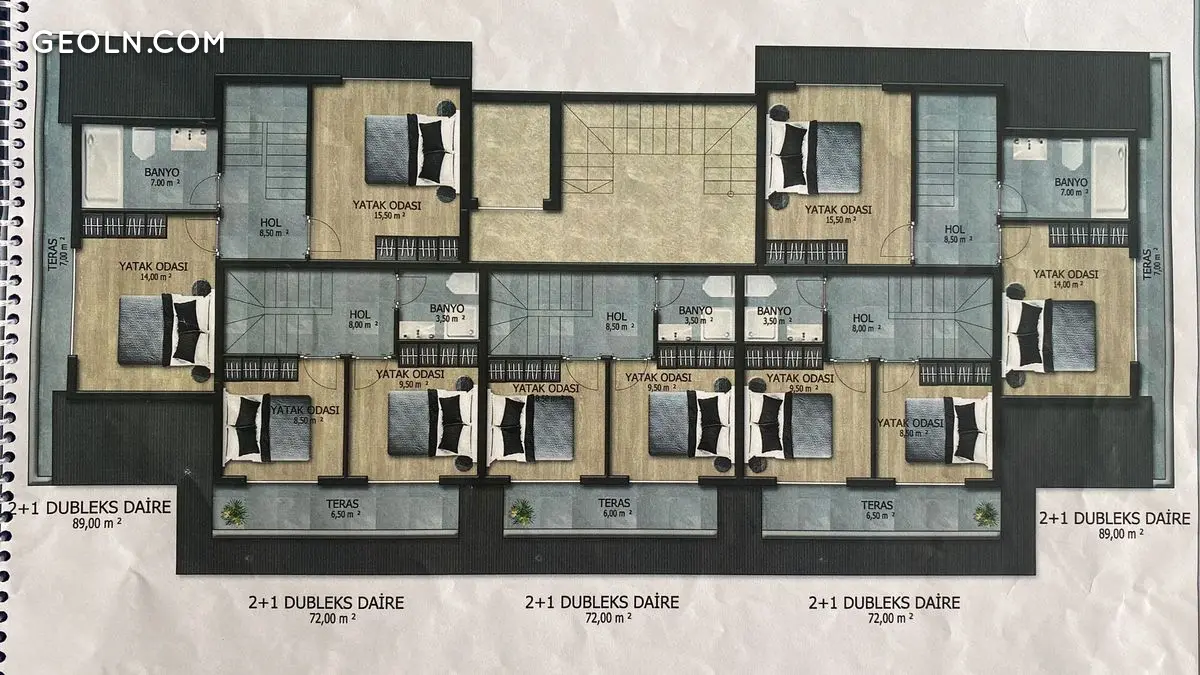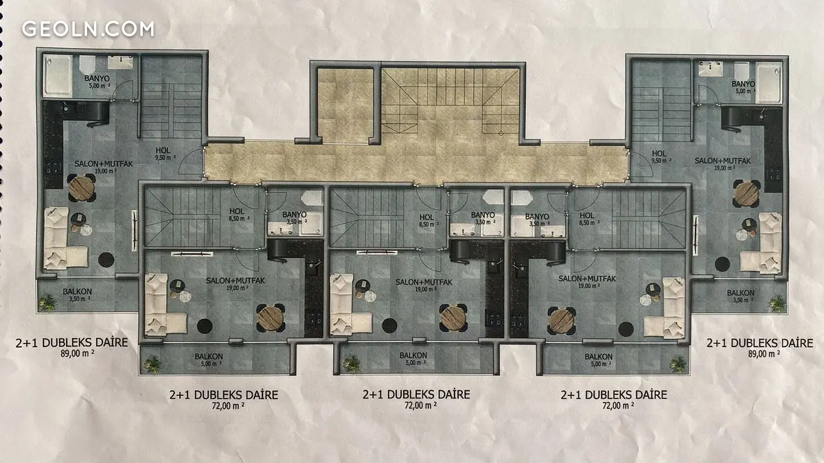 - 2+1复式公寓:总面积88m2-105平方米(美式菜肴,2 间浴室)