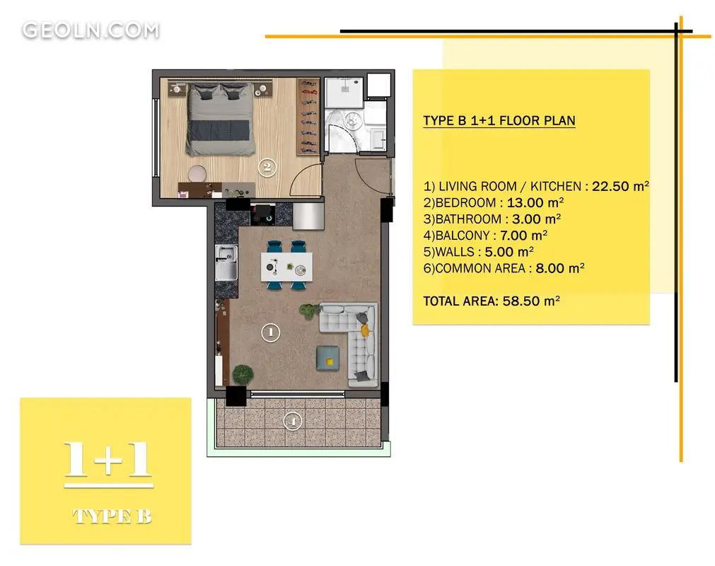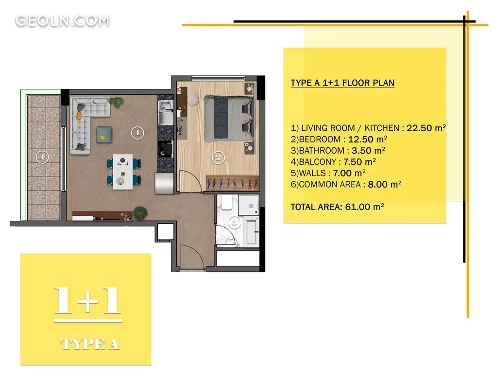 - 1+1 公寓 - 30 公寓,从 58 到 61 平方米