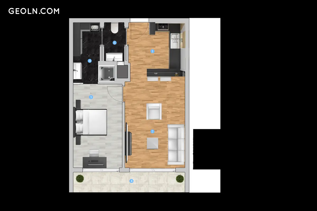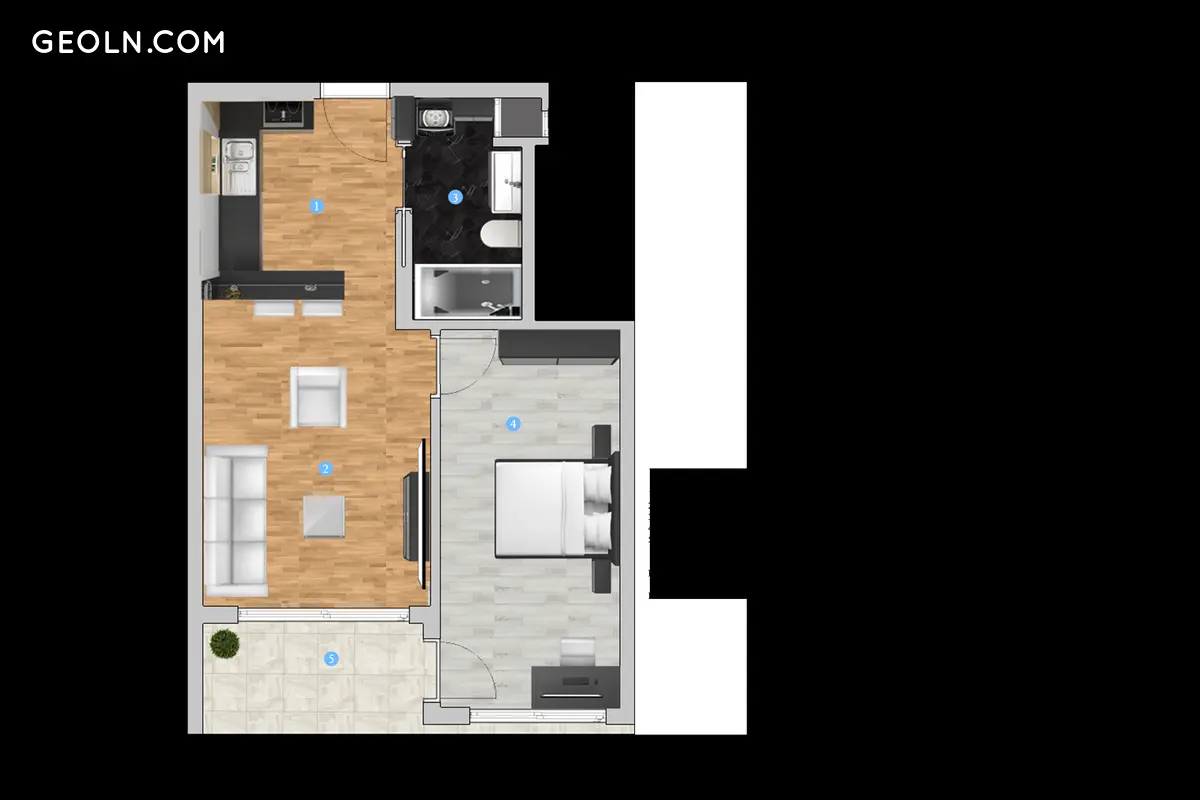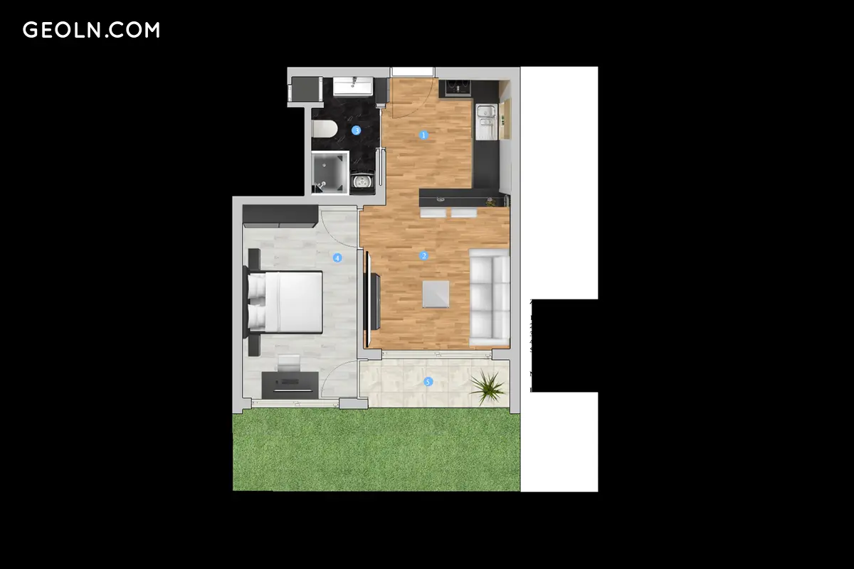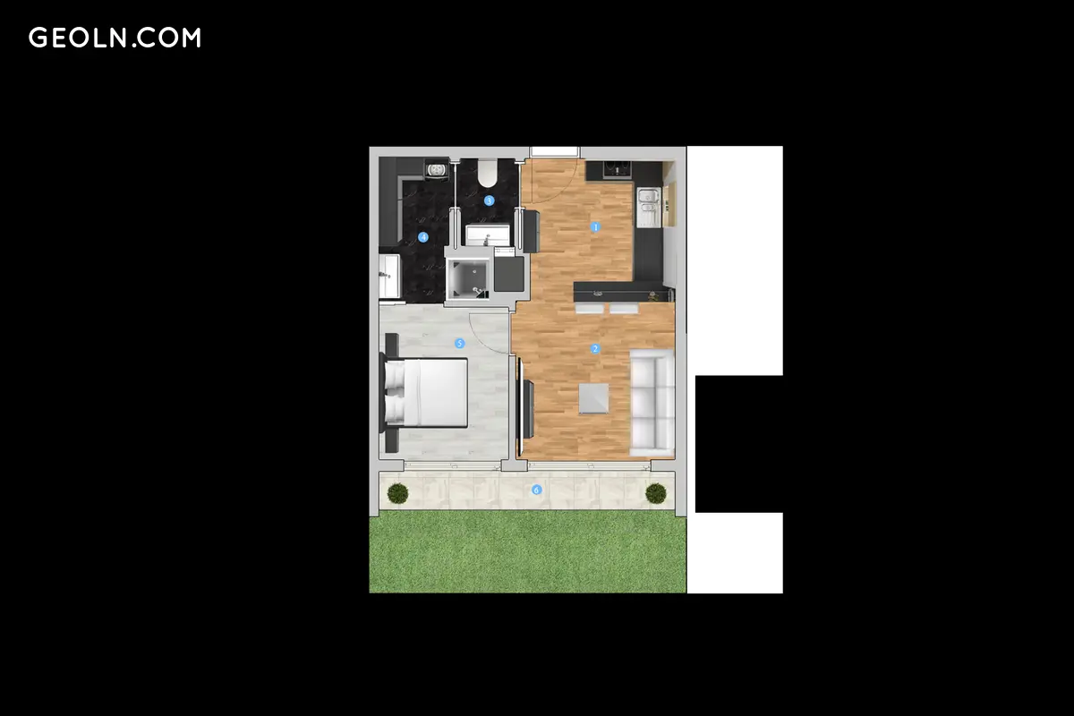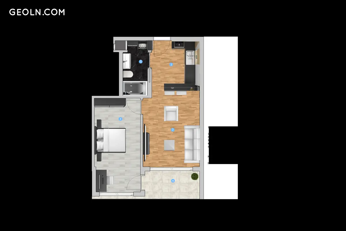 公寓 1 卧室 49 平方米,位于土耳其阿拉尼亚