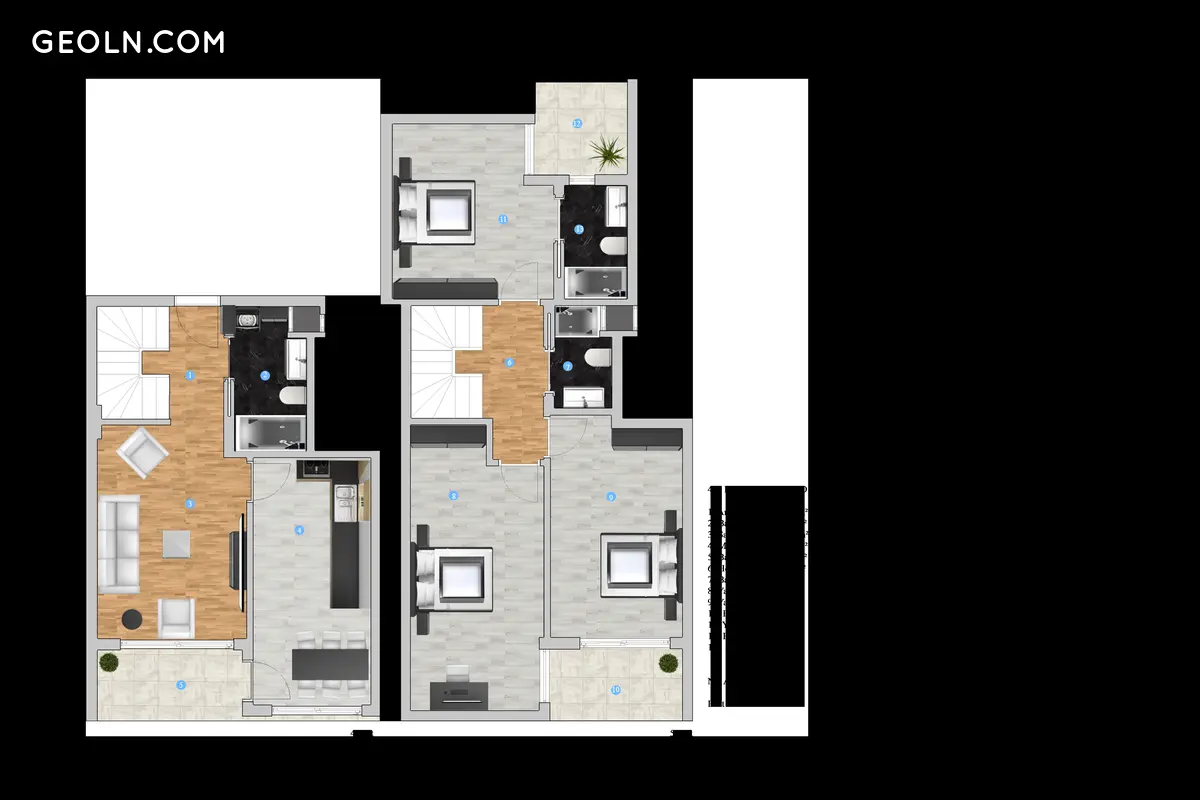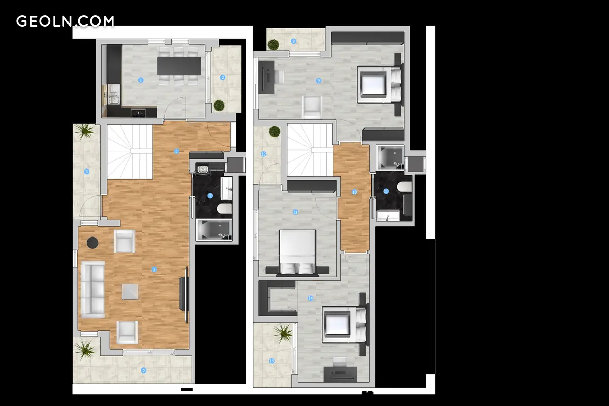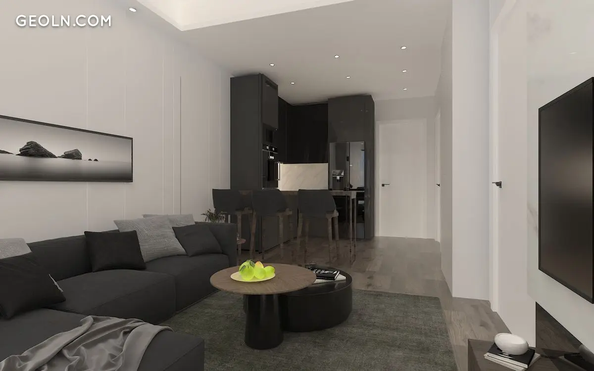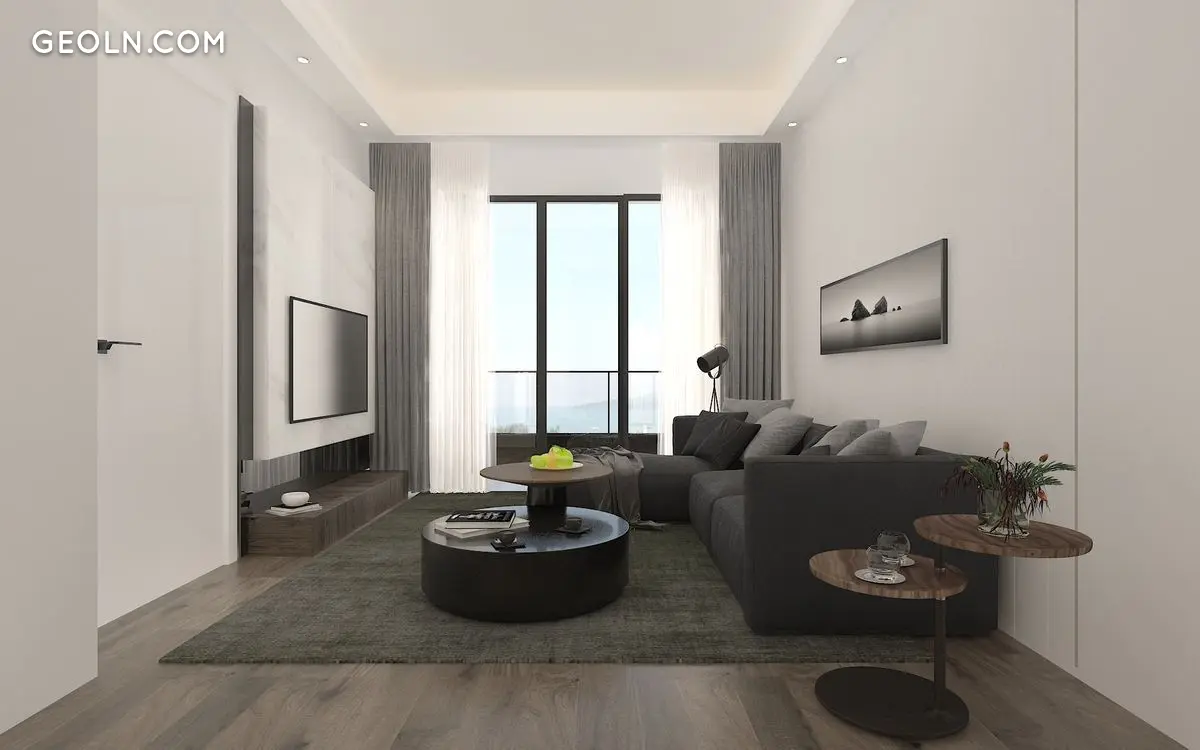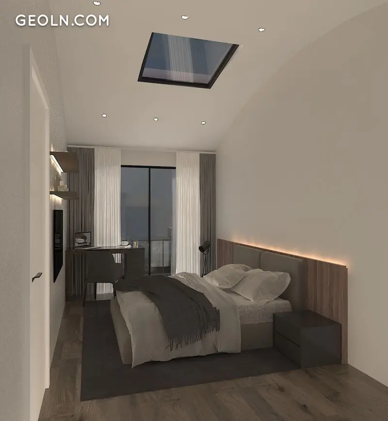 - 每个房间和公共区域都有带 LED 照明的拉伸天花板。