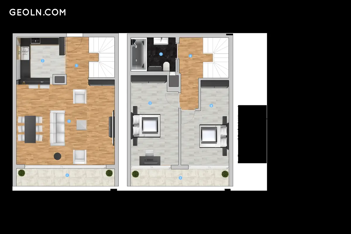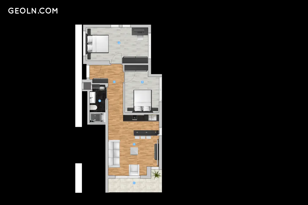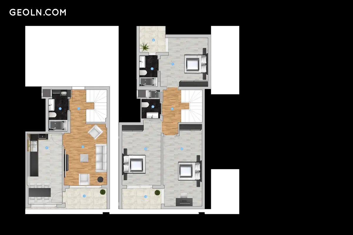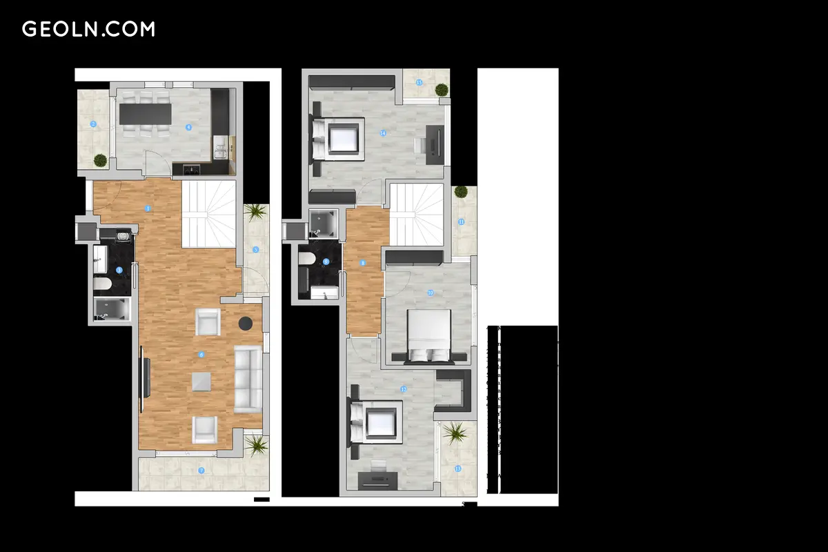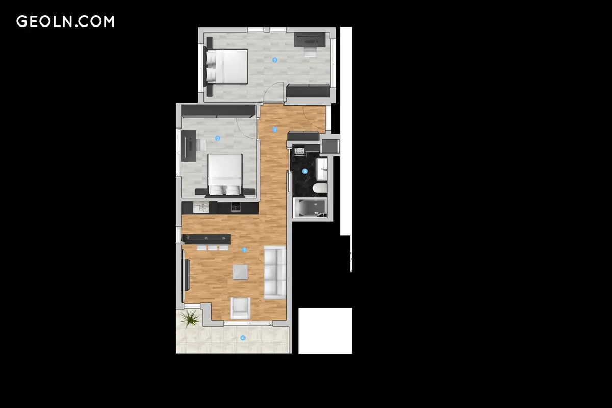 - 每个房间和公共区域都有带 LED 照明的拉伸天花板。