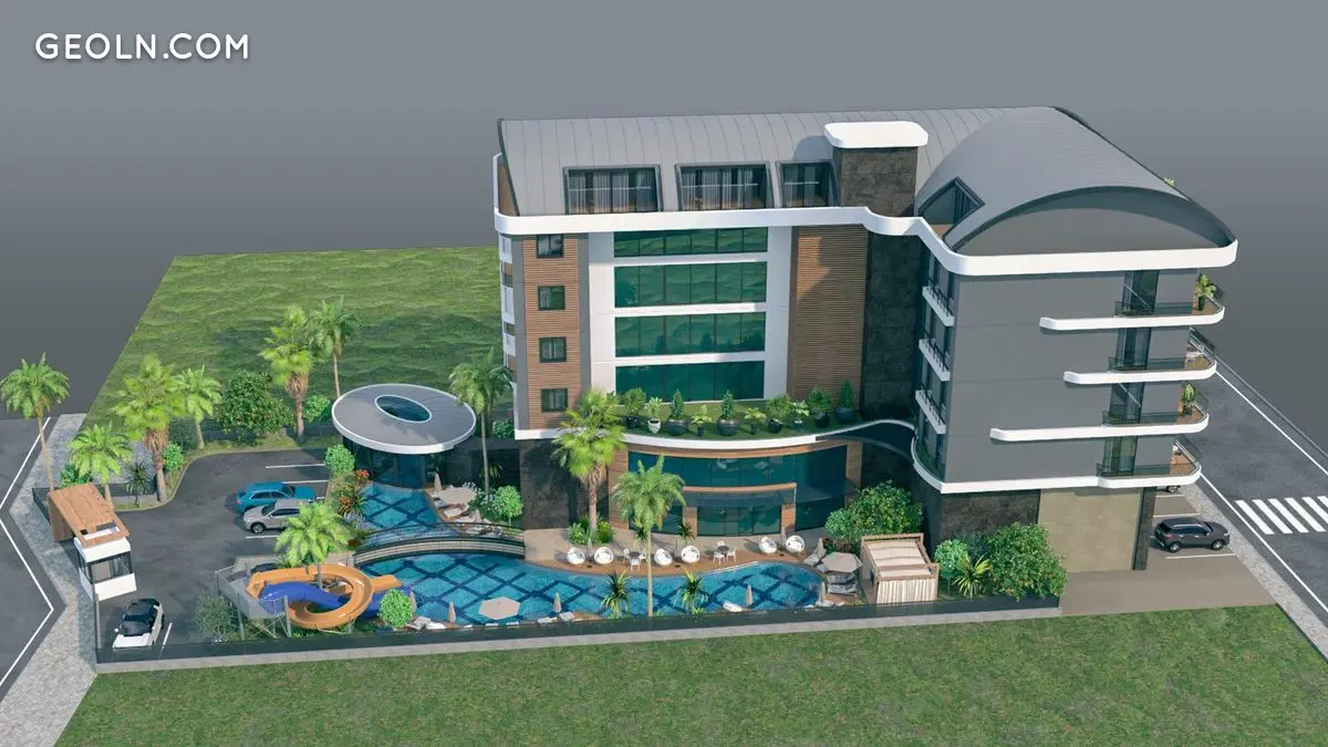 新住宅综合体位于 Kargicak 区阿拉尼亚。综合体由一栋五层建筑组成,共有 29 套不同布局的公寓:1 + 1、2 + 1 和 3 + 1 和 4 + 1套顶层公寓。所有公寓都将以精美的装饰交付。