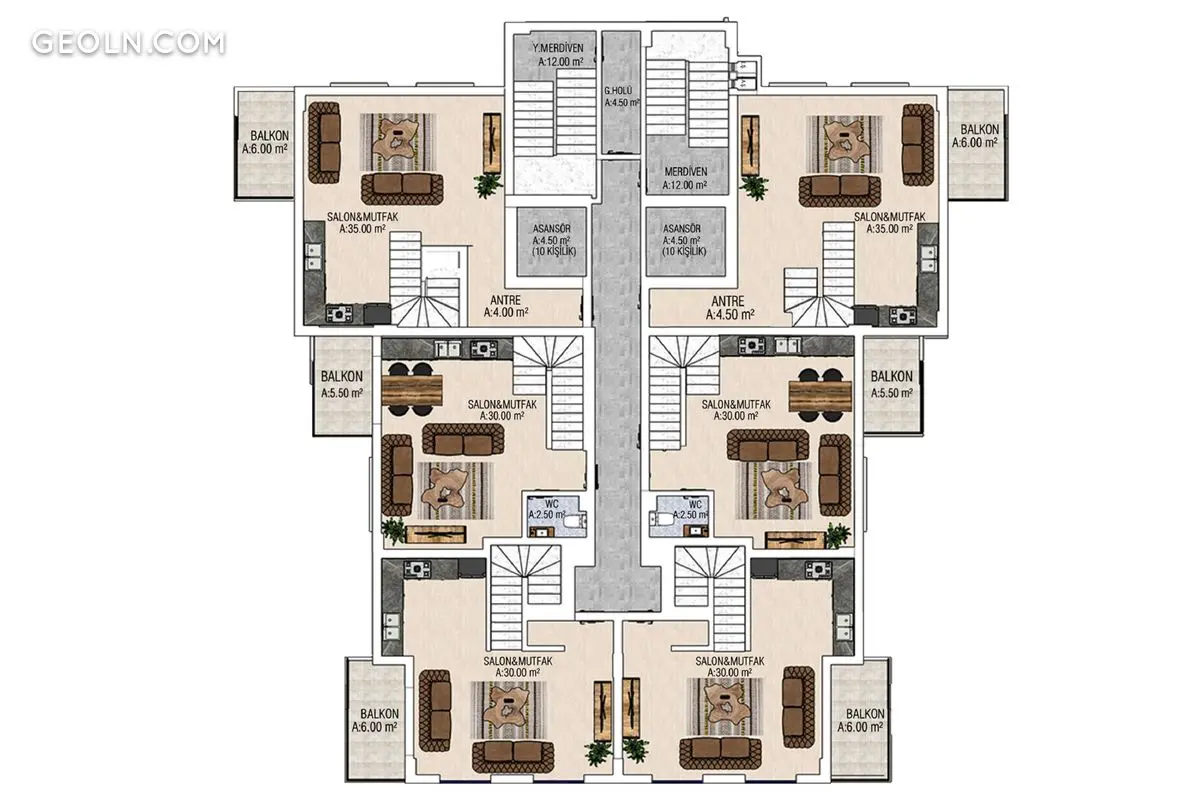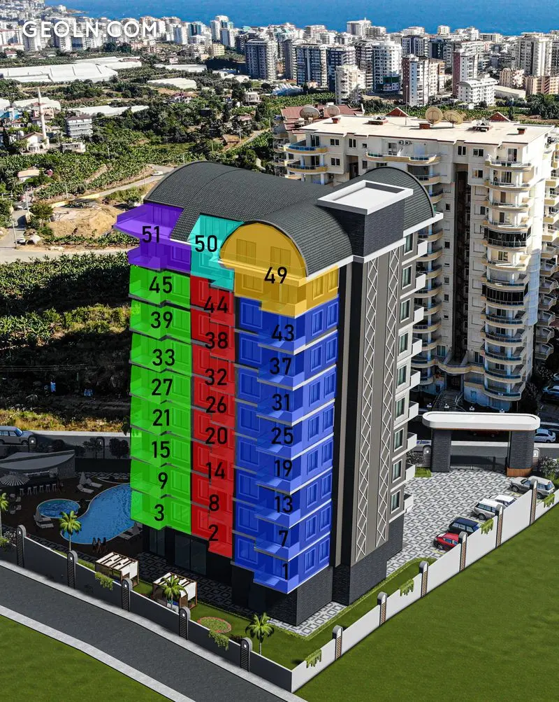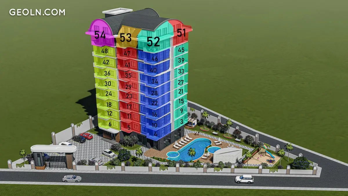 我们的项目位于Mahmutlar 521地块3地块。该综合体占地2.265平方米,建筑面积3.600平方米,由54套公寓组成,其中48套公寓是 1 + 1 和 6 2 + 1 span>