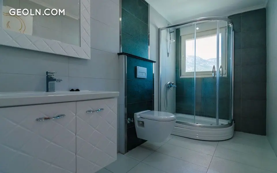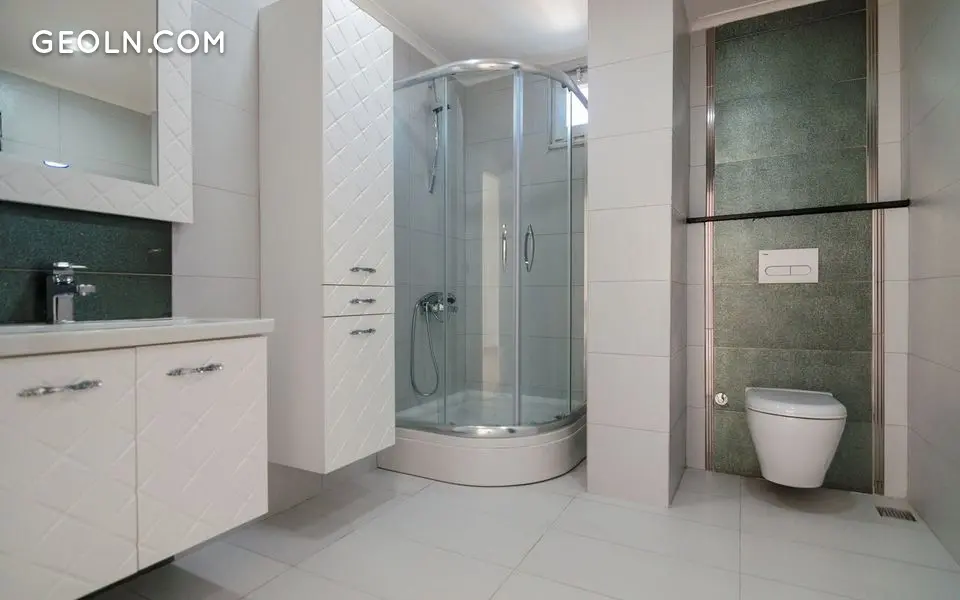 - 希尔顿风格水槽、马桶、淋浴、内置橱柜浴室