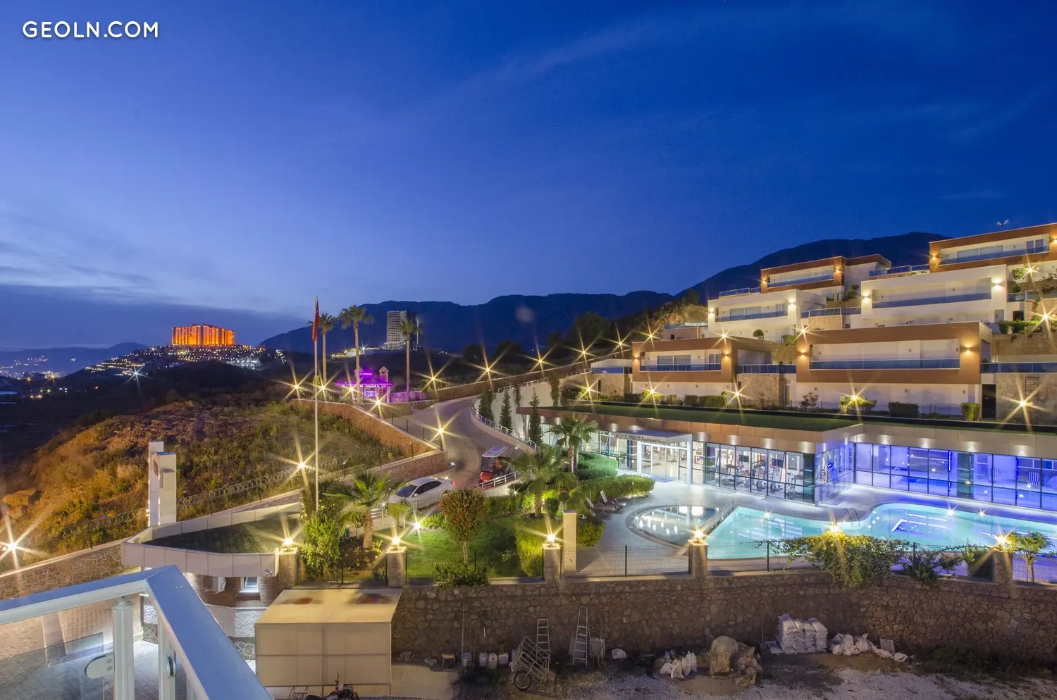 该建筑群周围环绕着野生动物和山脉,享有美妙的海景。 Kargicak 位于阿拉尼亚以东,靠近 Mahmutlar,大部分欧洲人在这里购买房地产。