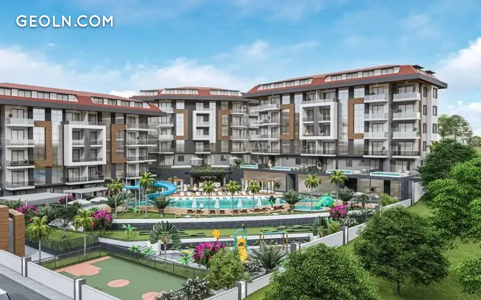 位于 Kestel 的建筑群。与该地区的大多数酒店一样,这座建筑群非常靠近大海 - 距离海滩仅 700 米。距市中心5公里,距机场30公里。