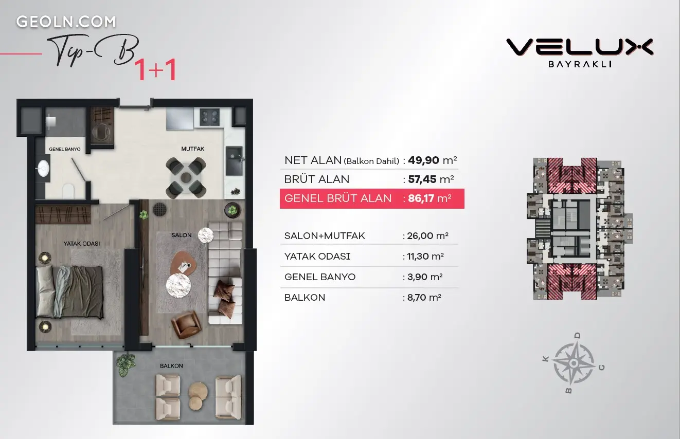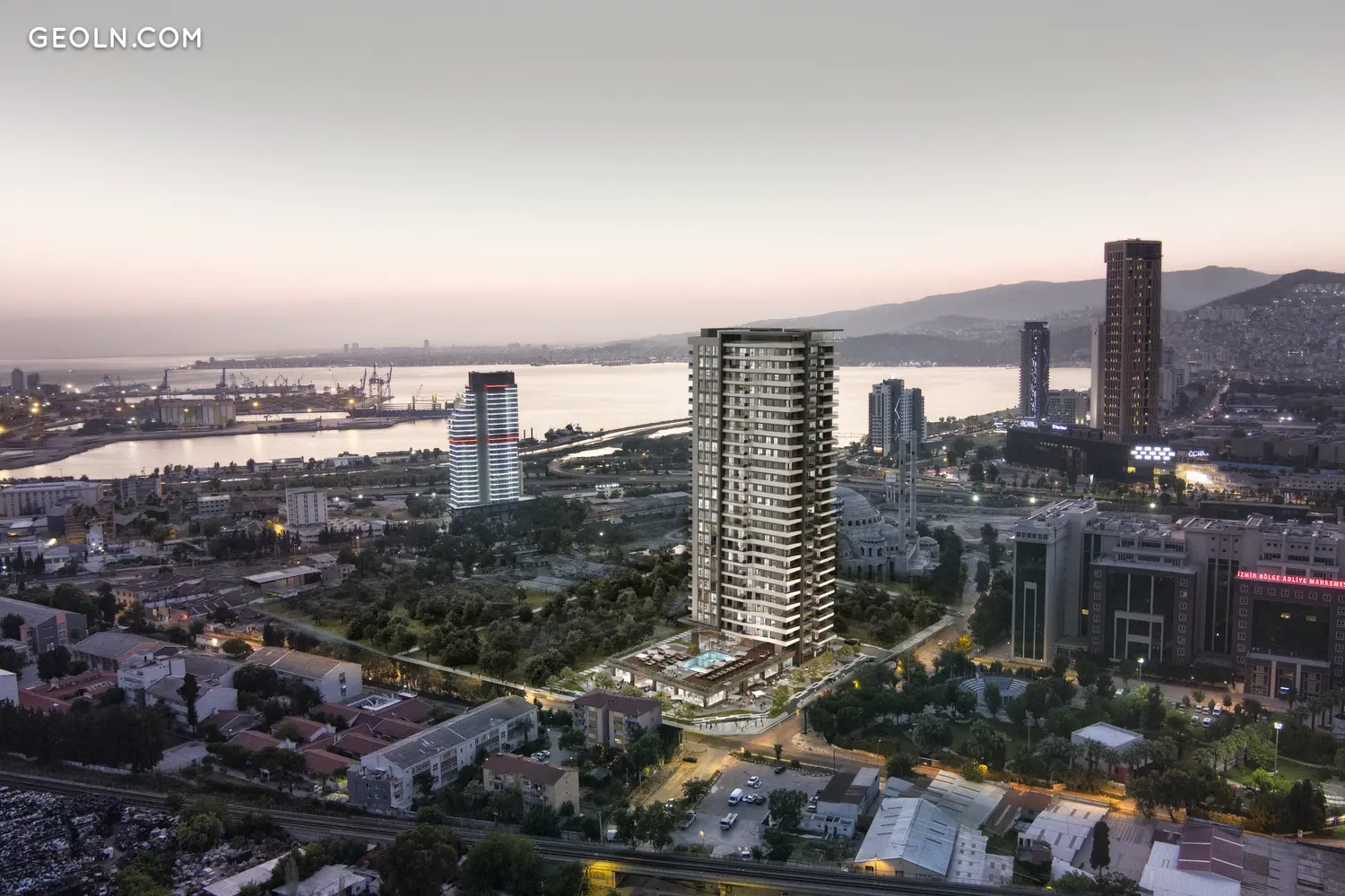 市中心,理想的位置。该项目位于 Bayraklı 区,距离市中心 5 分钟,周围是高耸的摩天大楼。