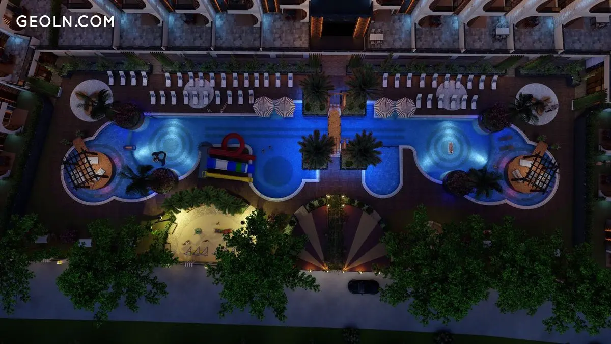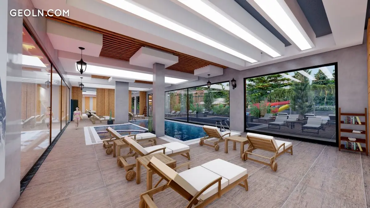 境内:带滑梯和按摩浴缸的室外游泳池、带按摩浴缸、烧烤和凉亭的室内游泳池、儿童游乐室和游乐场、电影院、私人海滩和海滩服务、SPA:桑拿、土耳其浴室、蒸汽浴室、按摩室房间、健身房、餐厅、台球、乒乓球台、卫星电视和互联网、24/7 安全、视频监控、安全的室内和室外停车场、发电机。
