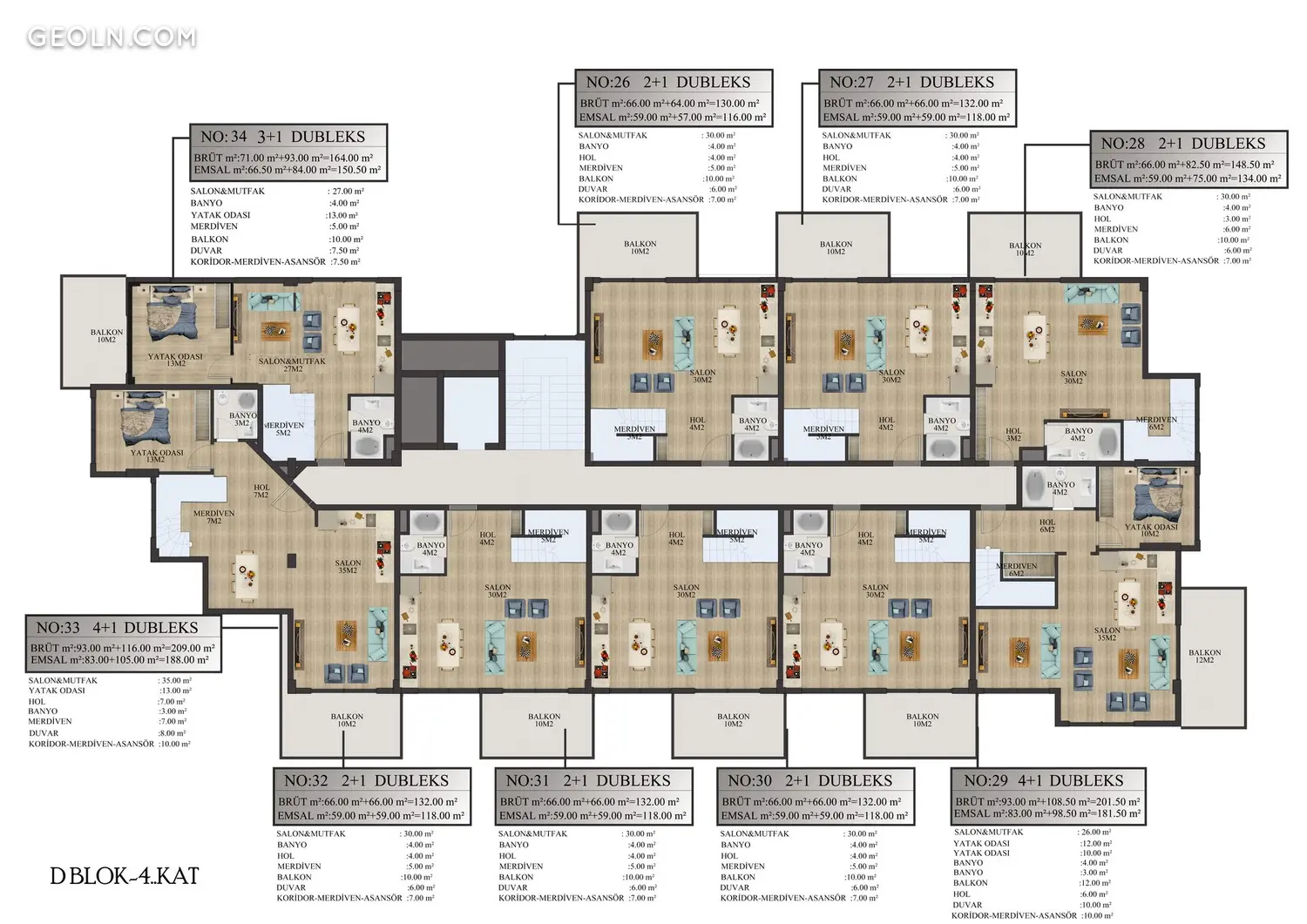 该综合体占地 8400 平方米,由四个 4 层高的街区组成,共 124 套公寓,拥有完善的娱乐和永久居住基础设施。