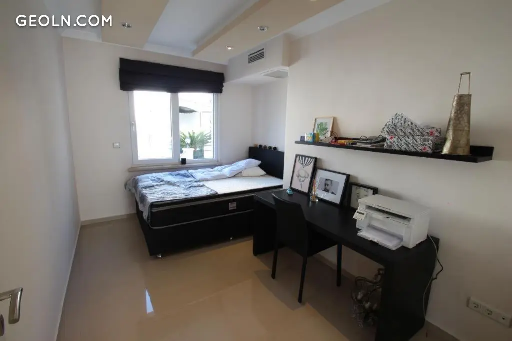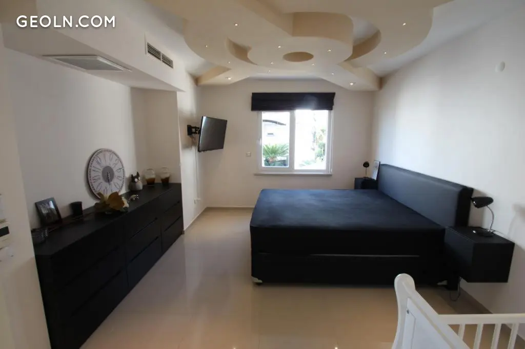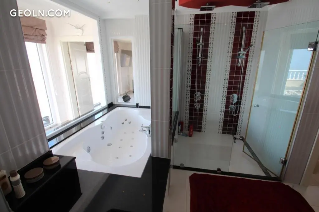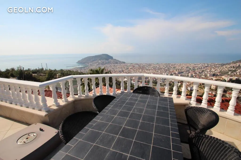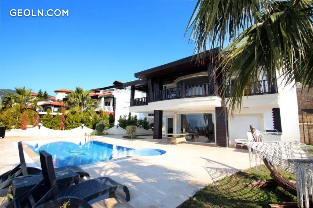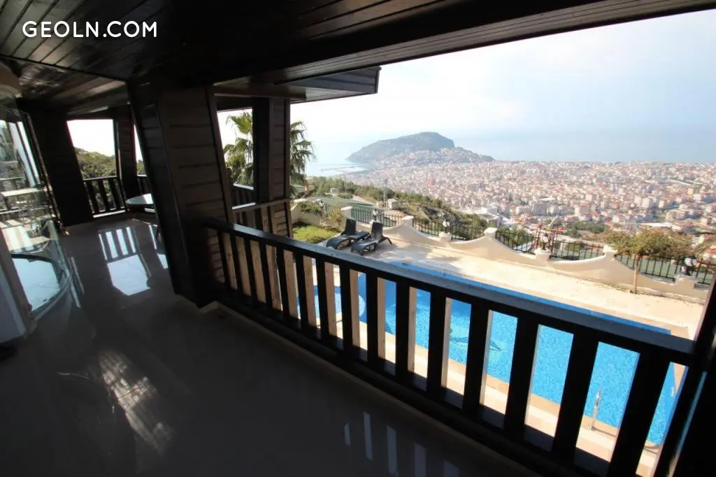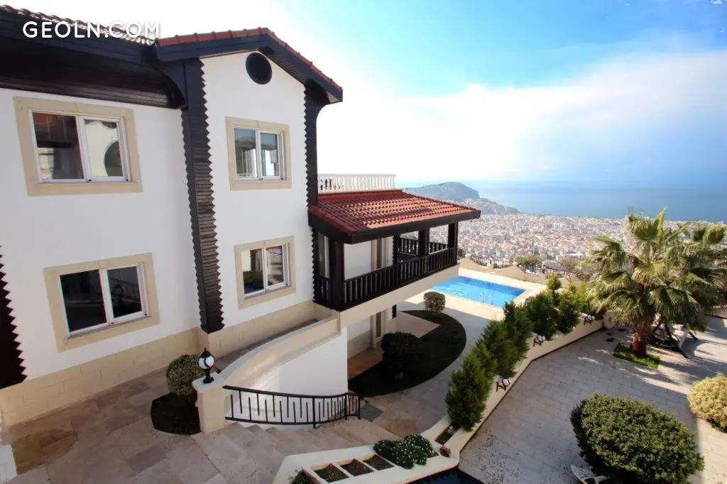 в районе Тепе города Алания. На территории имеется собственный бассейн, место для отдыха, место для барбекю. Участок территории виллы 625 квадратных метров, жилая площадь виллы 369 квадратных метров.Вилла имеет 4 спальни, 2 огромных зала для гостей, 4 банных комнат с санузлом, 1 террас балкон, и один широкий балкон. С балкона можно любоваться на прекрасный вид на средиземное море, панорамный вид города.