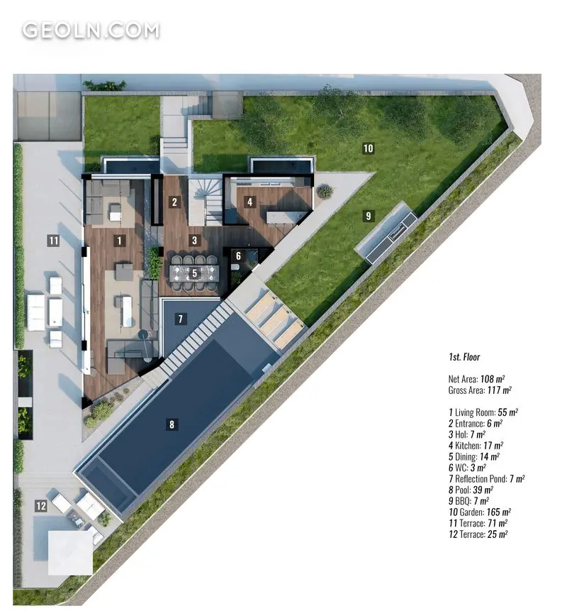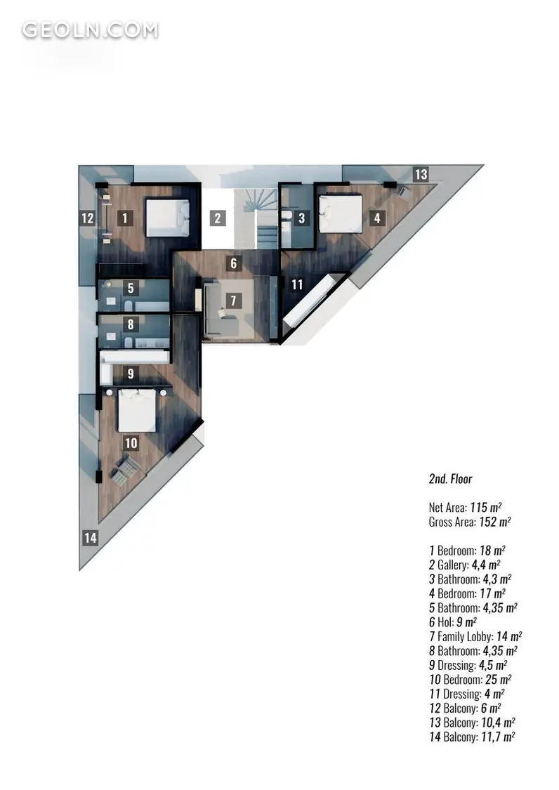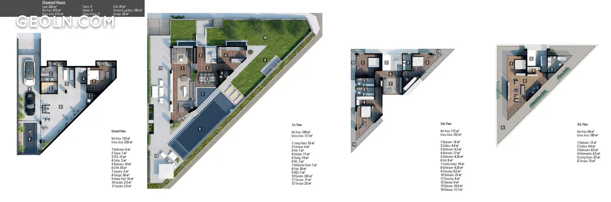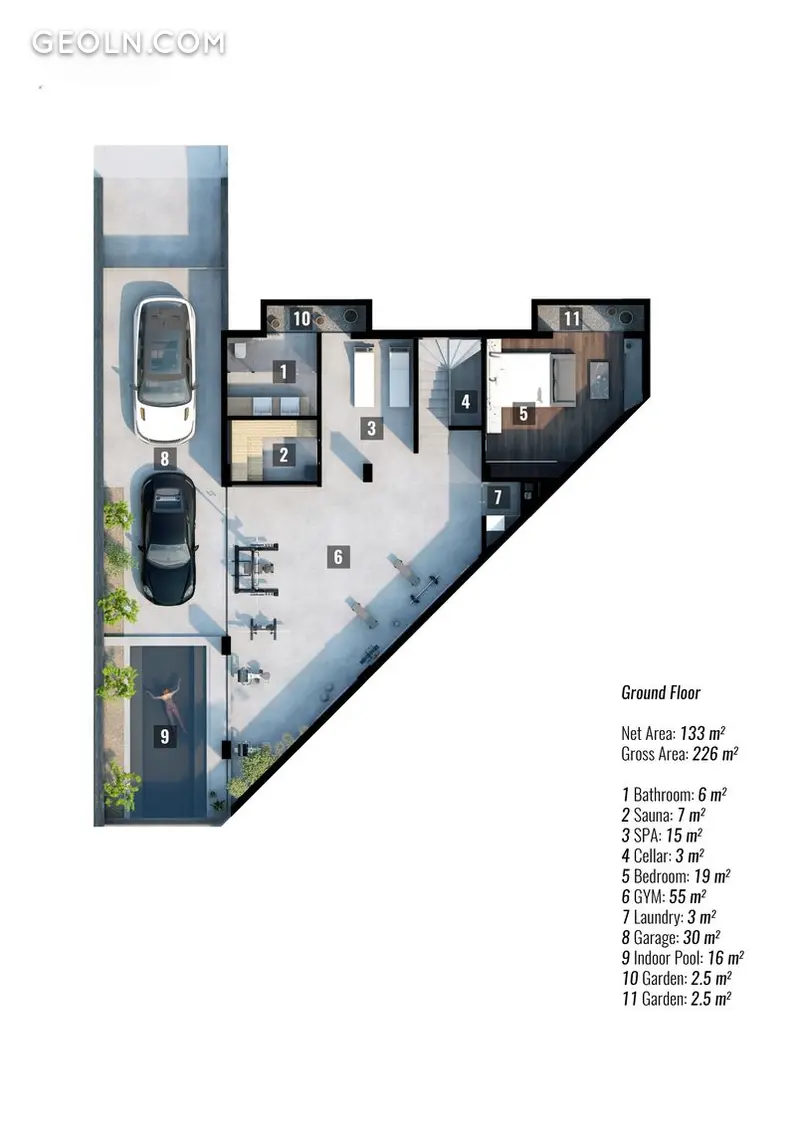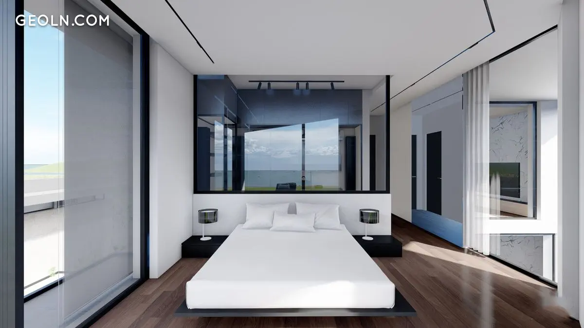 - 别墅有 4 层楼、5 间卧室、3 个大厅、可俯瞰大海的开放式露台和带玻璃的露台。 别墅还设有私人室外游泳池。拥有自己的健身房。