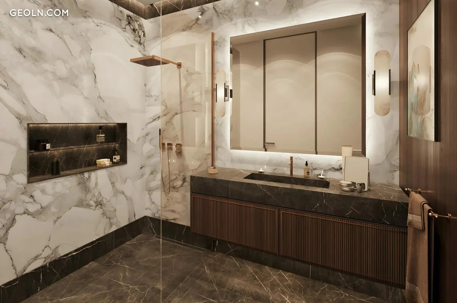 Удобства: тренажерный зал на крыше, площадка для игры в падель, беговая дорожка, плавательный бассейн, комната для медитации, сад и игровая зона, аптека, продуктовый магазин и ресторан на территории комплекса.