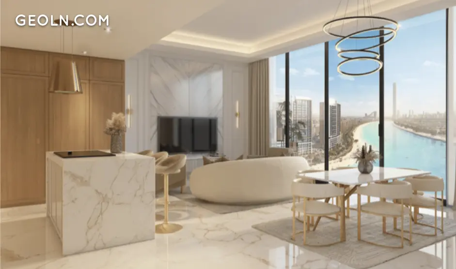В Riviera Azure интерьеры отделаны по самым высоким стандартам. Спроектированная для роскошного образа жизни гостиная открытой планировки оснащена ультрасовременной бытовой техникой и безупречными столешницами. Во всех апартаментах есть балконные окна от пола до потолка, с которых открывается