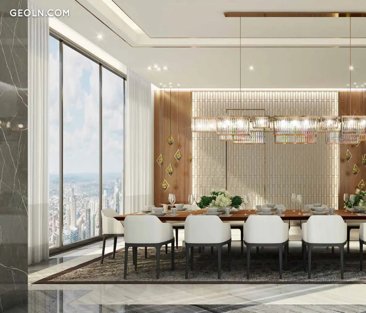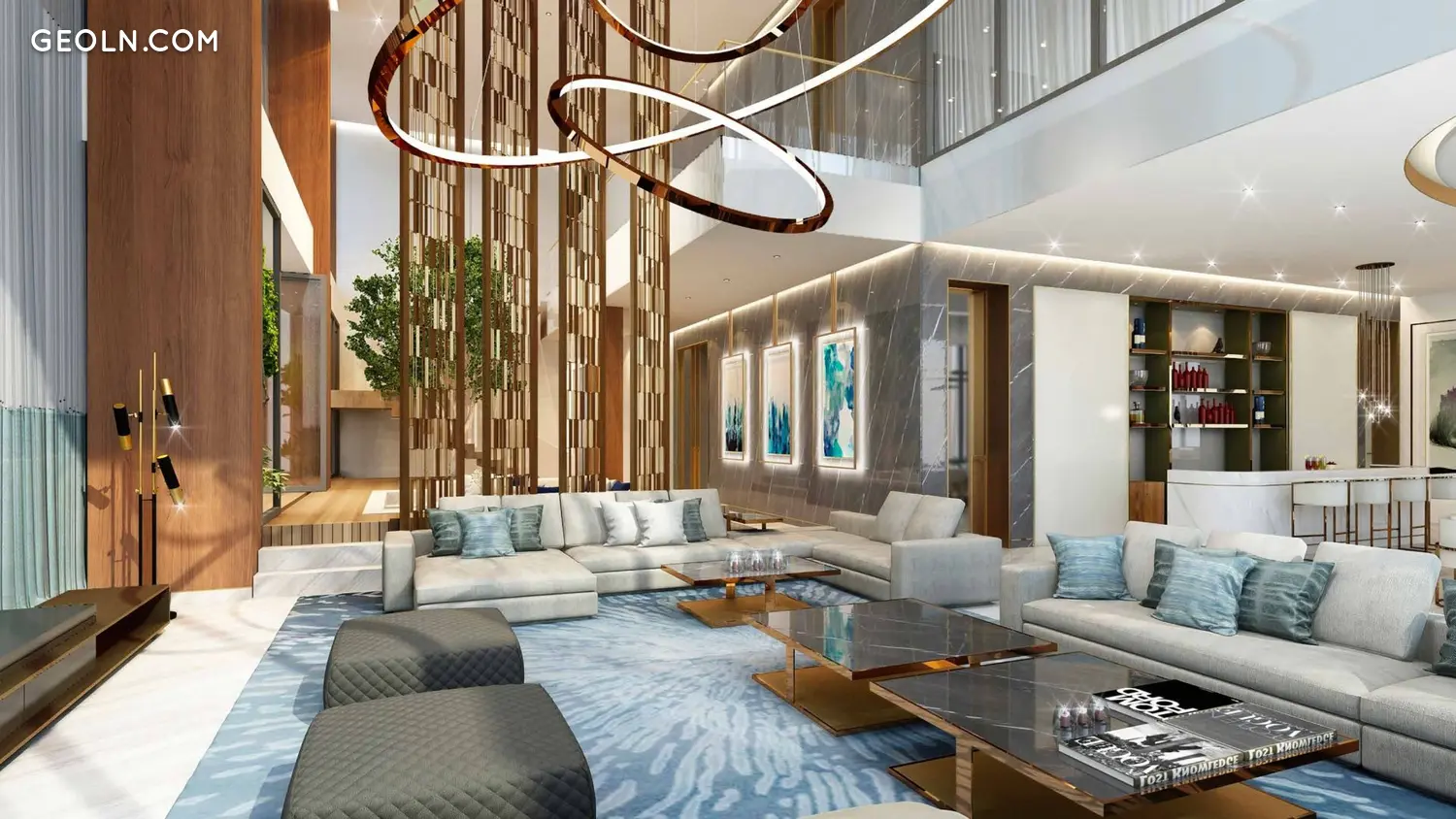 除了阁楼外,所有类型的住宅均设有阳台和露台,提供令人惊叹的运河和城市全景。顶层公寓的布局包括私人游泳池和露天露台上的按摩浴缸,以及根据具体住宅的配置,可能配备私人健身房、桑拿、蒸汽房、超现代家庭影院、媒体室和景观花园。两个顶层专门用于顶层公寓业主的私人娱乐区:这里设有活动厅和 584 平方米的开放式客厅,提供迪拜天际线的全景。