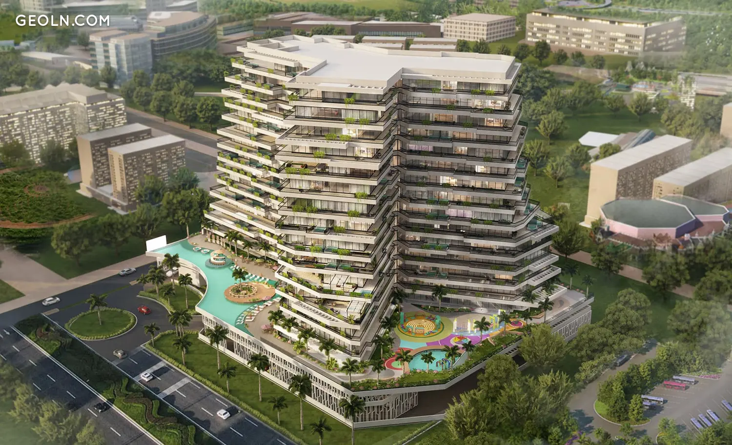 Проект находится в одном из самых популярных районов - Arjan. Район известен своими парками: Miracle garden, Butterfly fly garden. В районе не будет высоких зданий - их строительство здесь под запретом.