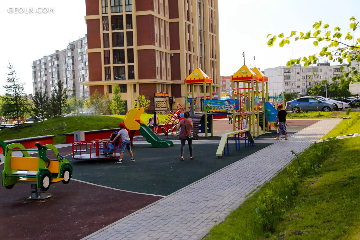 正在建设一个面积为9,716平方米的土地,根据现代要求将其围起来并进行美化景观建设。在这里进行了具有景观设计元素的美化工作,安装了安全表面的儿童游乐场,并配备了休闲区。另外,院子里有足够的空间容纳汽车。