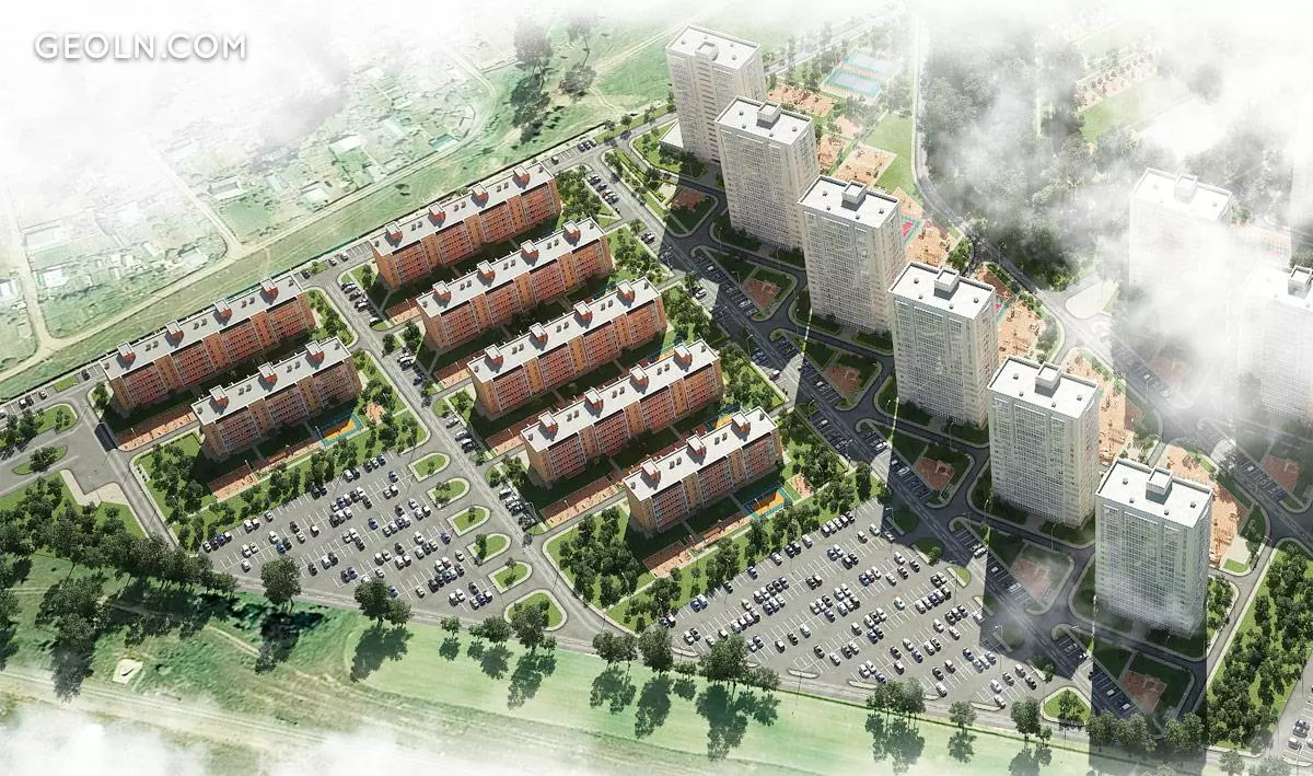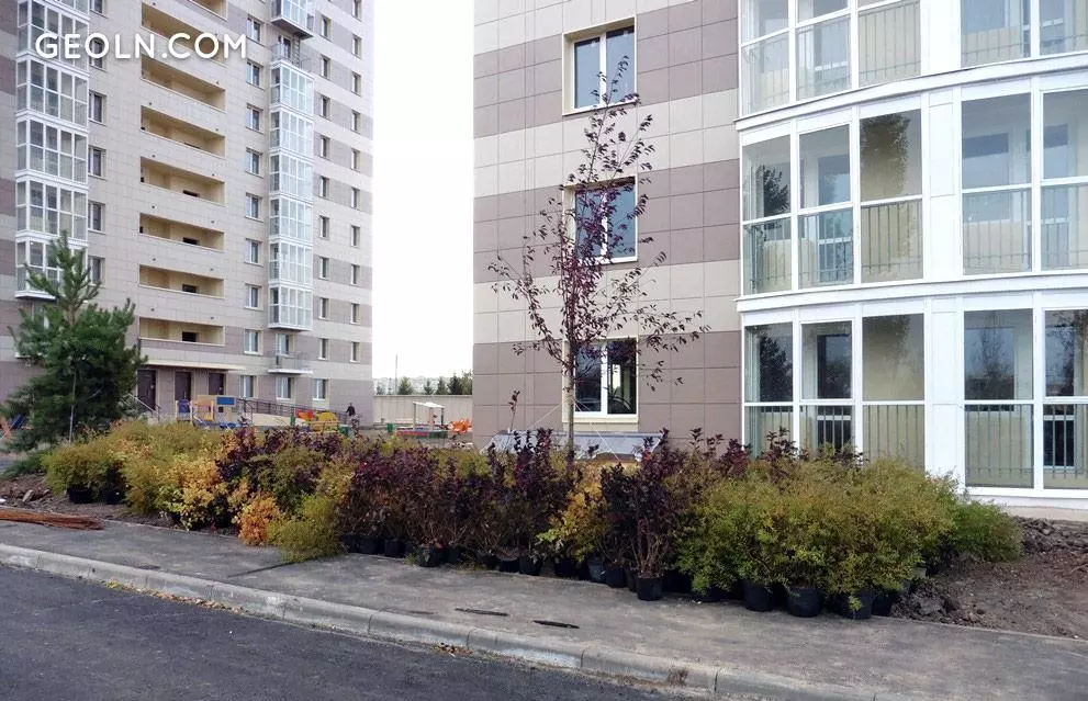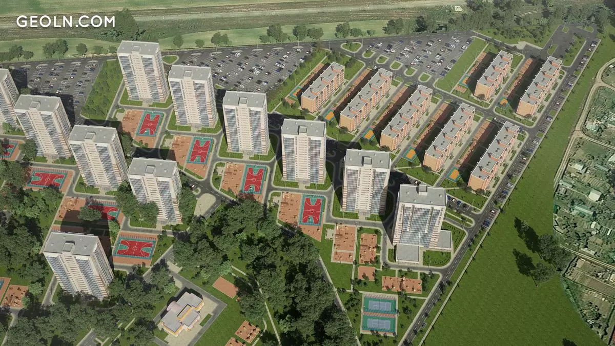 将在该综合体的领土上组织一个公园,建设儿童游乐区和运动场,并建设娱乐区。人行道和车道铺设在房屋附近,草坪被打碎,树木被种植。正在组织客用停车场,正在建设大型地面停车场。
