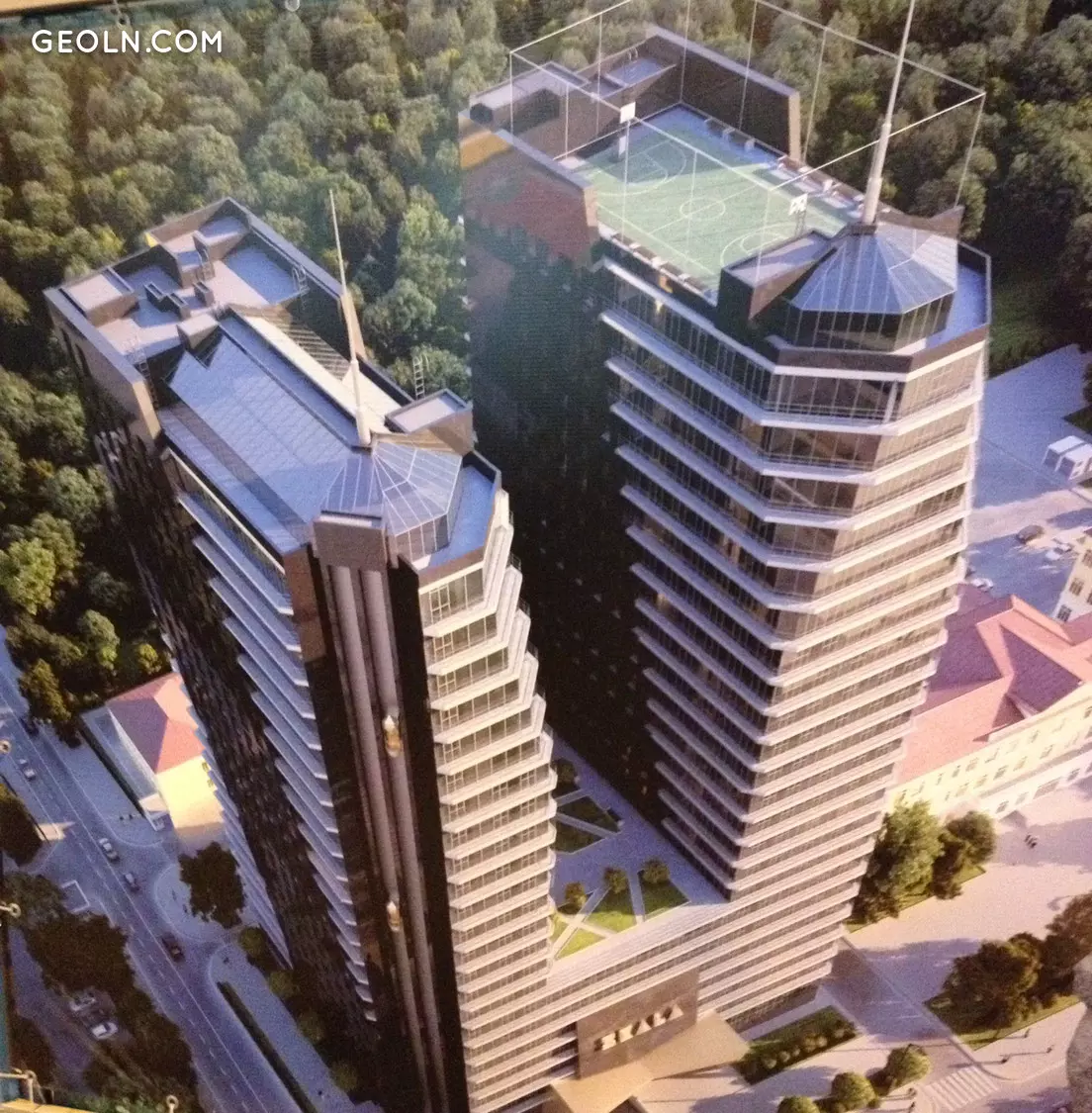 开发人员已应用了几种独特的解决方案,其中包括位于八楼高处的休闲区,其中设有步行小巷,树木和观赏植物,以及在25层楼的可操作屋顶上带有足球场的运动场。直升机停机坪位于另一部分的可操作屋顶上。