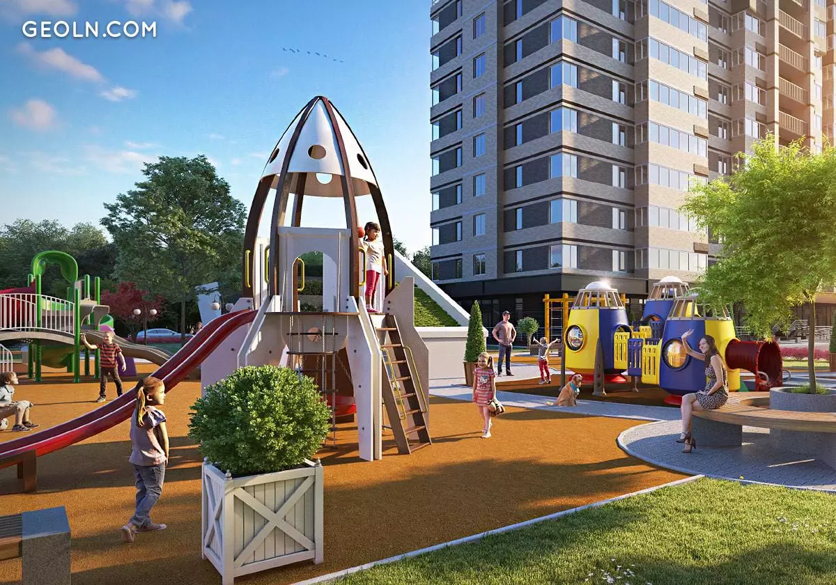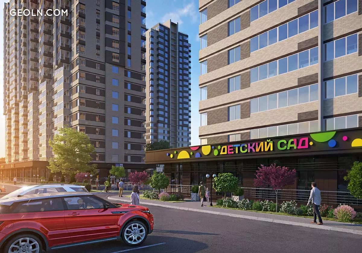 综合大楼的领土将配备儿童和运动场,休闲和娱乐区。在商业场所,为方便居民,计划设置一个幼儿园,早期开发中心,咖啡馆和商店。院子的美化将包括景观设计元素。
