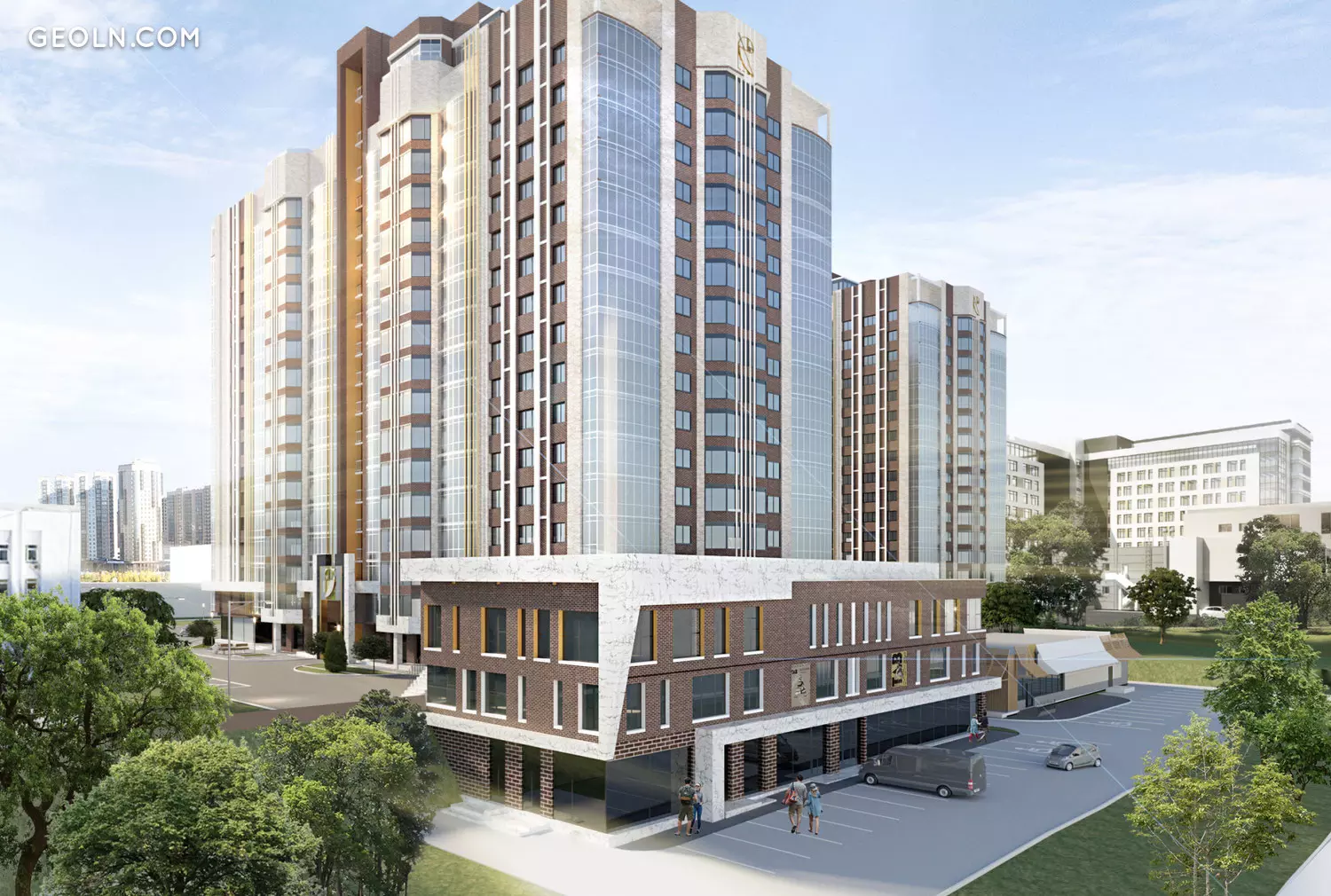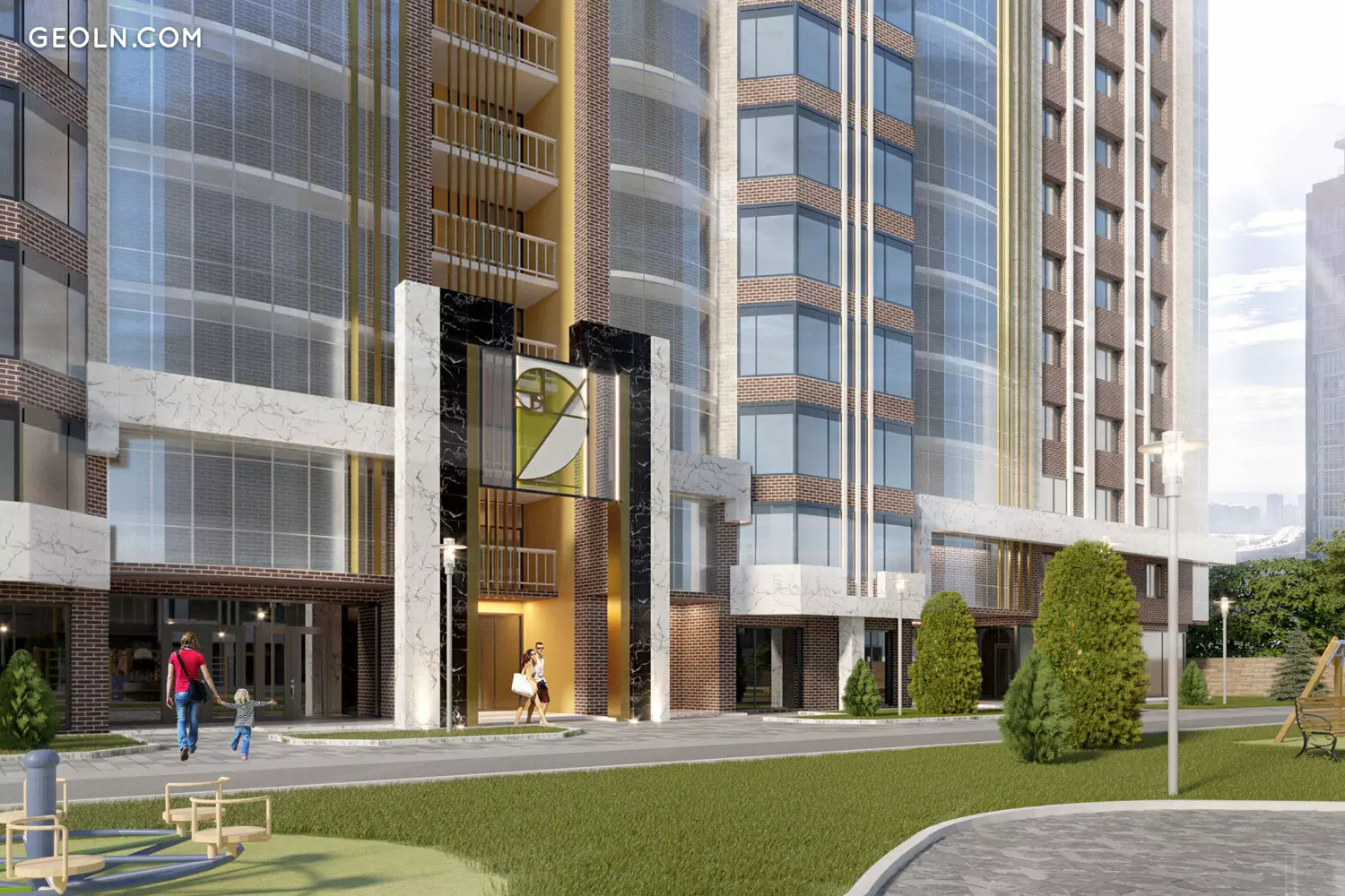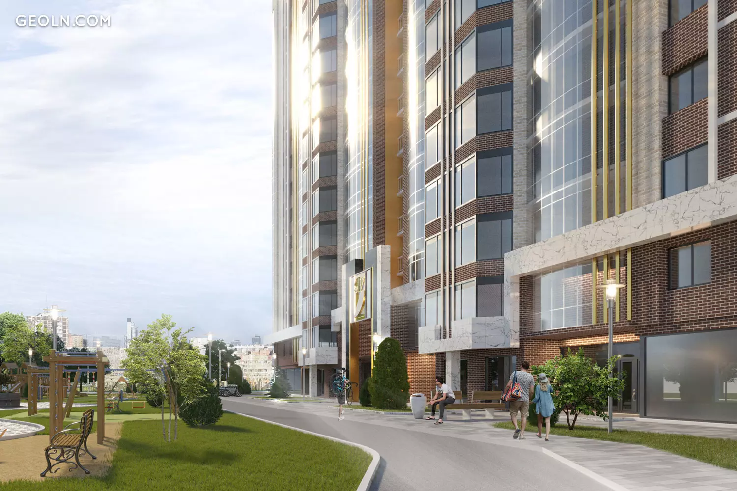 项目架构。住宅区“黄金区”由两座十六层的建筑物组成。该开发项目的自然对称性是一个封闭的环路,中间有一个庭院。淡淡的米色和巧克力色欧洲风格建筑,加上明亮的“金色”装饰。房屋的外墙和入口处上方将装饰有壮观的艺术作品-“金色部分”的象征。