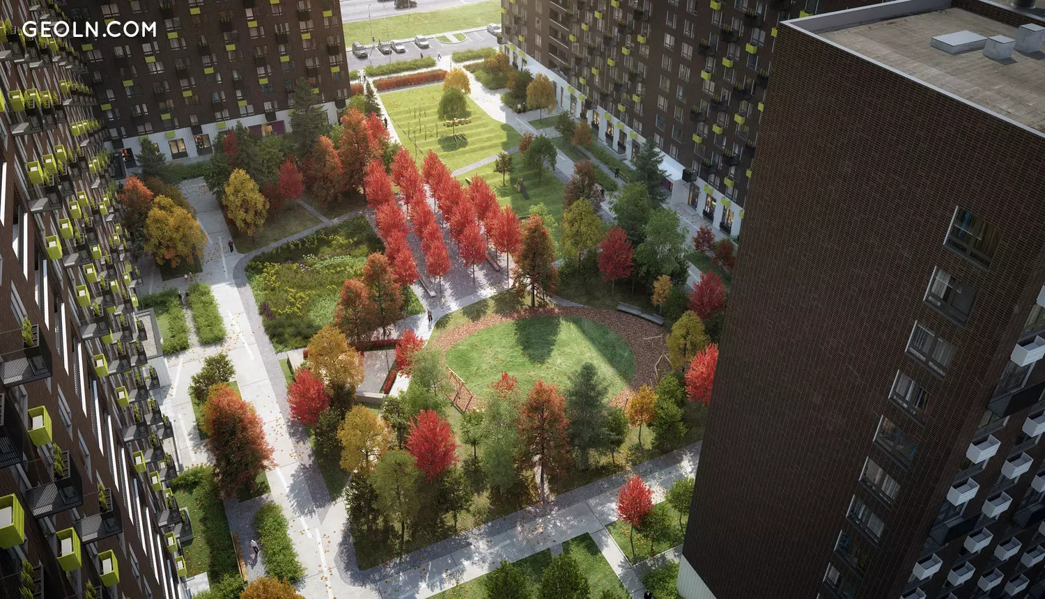 住宅综合楼“ Meshchersky Les”包括6栋房屋,这些房屋采用相同的建筑风格,楼高14至25层。新建筑以野蛮主义的风格建造,但是由于外墙面覆盖着鲜艳的瓷砖,它们看起来既现代又原始,与周围的自然景观融为一体。这些房屋功能齐全,可满足所有年龄段居民的需求。它们配有坡道,地面入口,对残疾人和有小孩的家庭非常方便。里面是多普勒的现代高速电梯。
