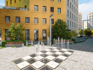 正在建设中的场地面积为2.5公顷。按计划,庭院的范围将位于茎突表面。这将使开发商能够坚持“无车庭院”的概念,并将住宅与商业区分开来。