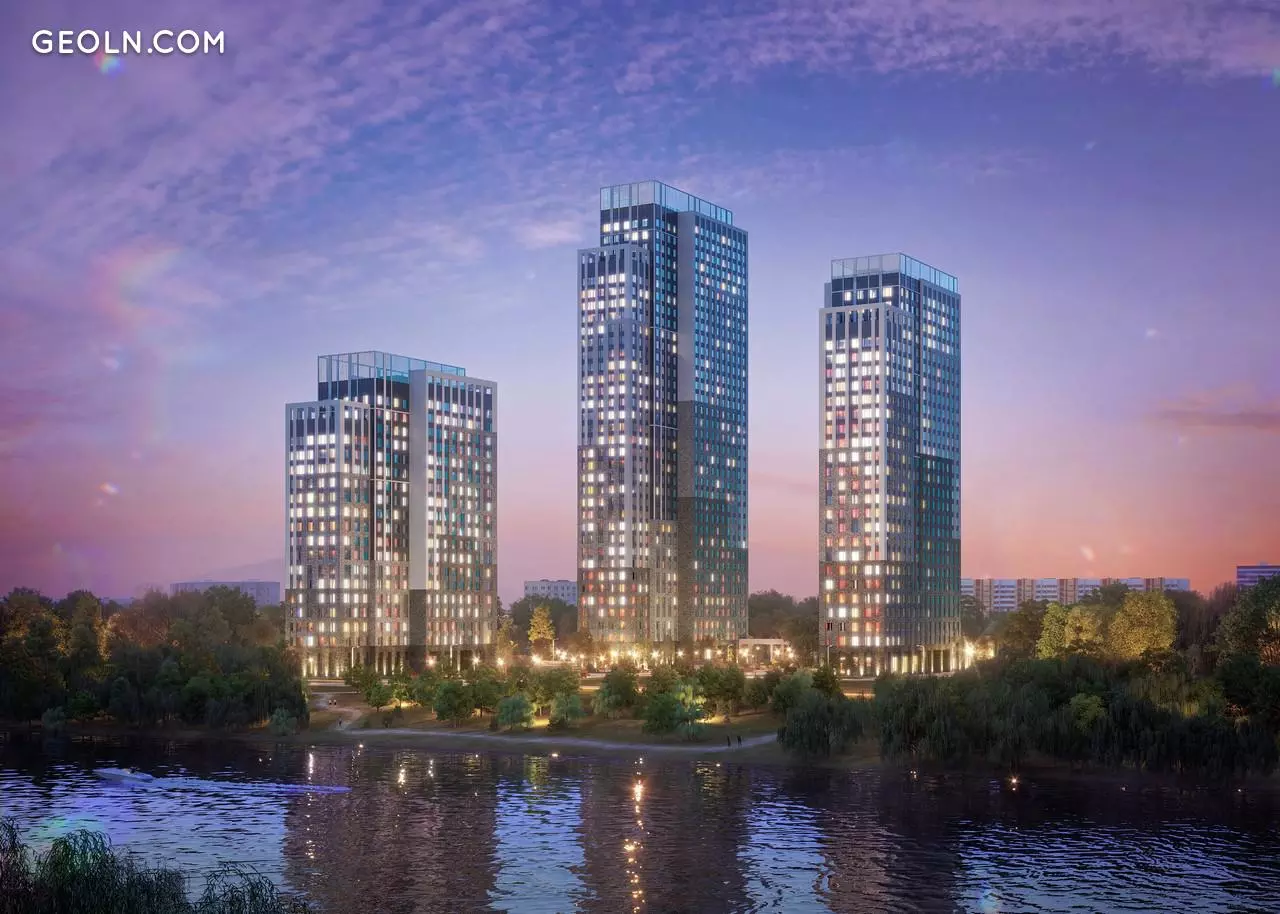 住宅区“自由”由三座多层塔组成,从19层到36层,以相同的建筑风格设计。