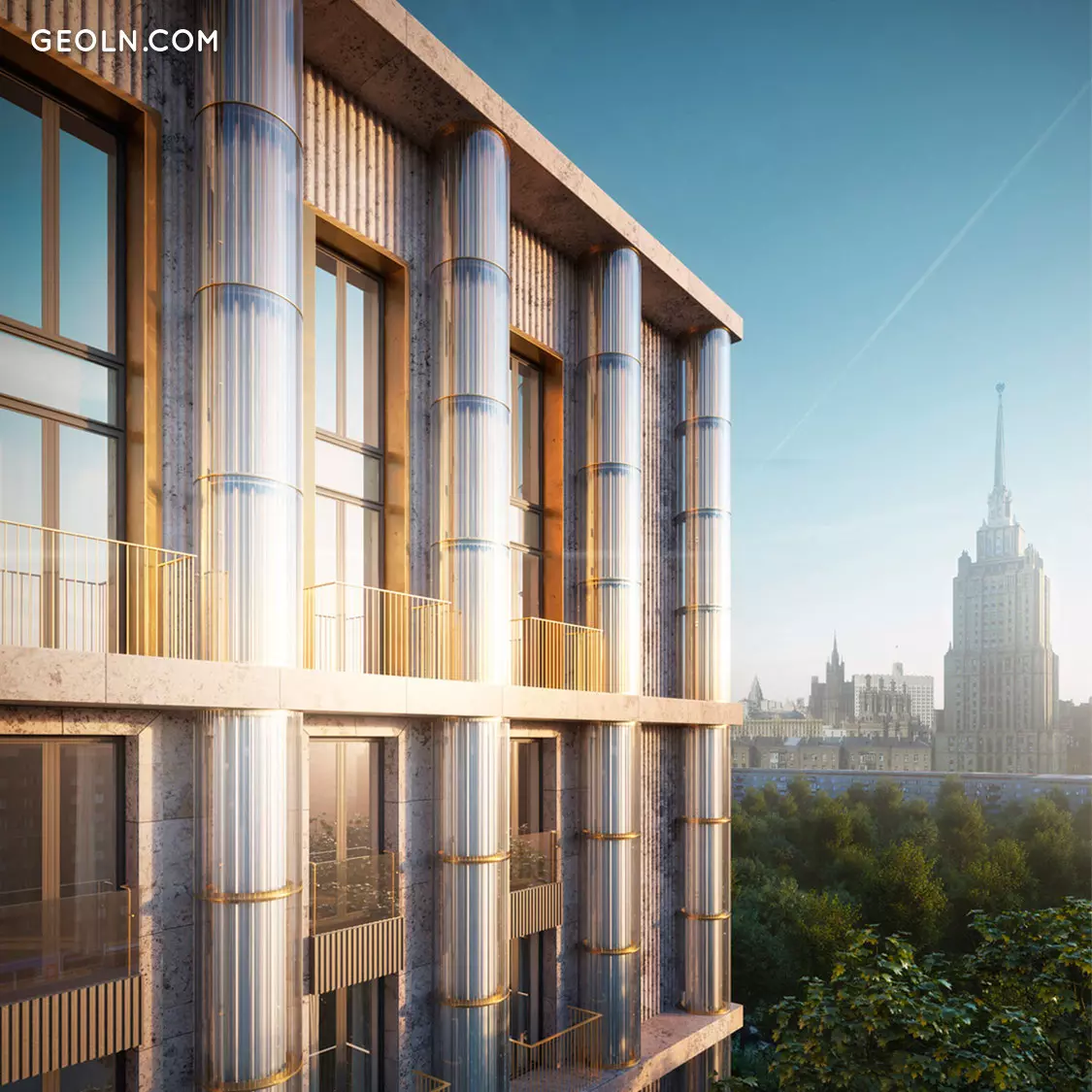 材料的自然性和形式的几何形状:重新考虑宫殿的形象,Kutuzovsky 12借鉴了意大利传统美化传统的精髓。