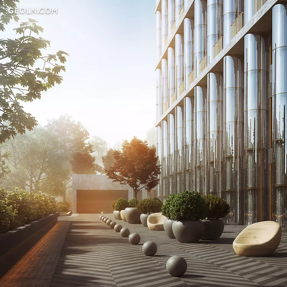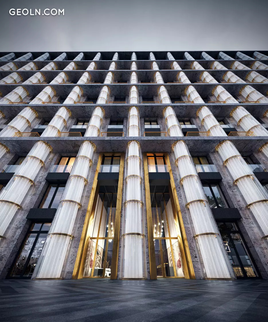 历史决定了房屋外墙的严重程度和对称性。 Tsimailo,Lyashenko&Partners局的建筑师按照Kutuzovsky Prospekt的古典顺序重新思考了特色元素,并从中创造了现代杰作。灰色的花岗岩,圆柱和天花板的节奏使房屋显得朴实而坚固,使其适合建筑环境。带有黄铜大写字母的水晶柱使房屋的形象更加庄重。