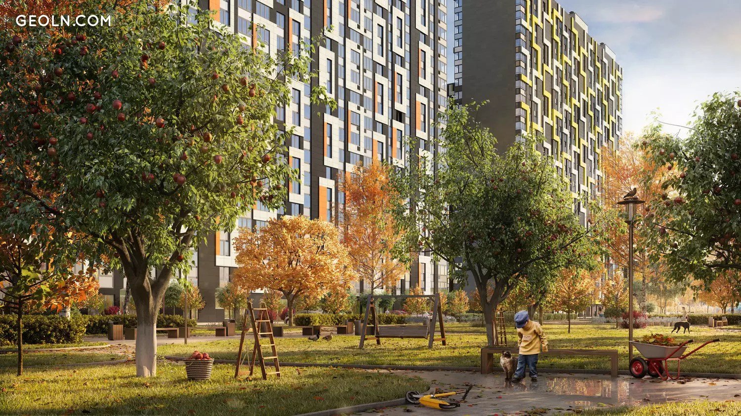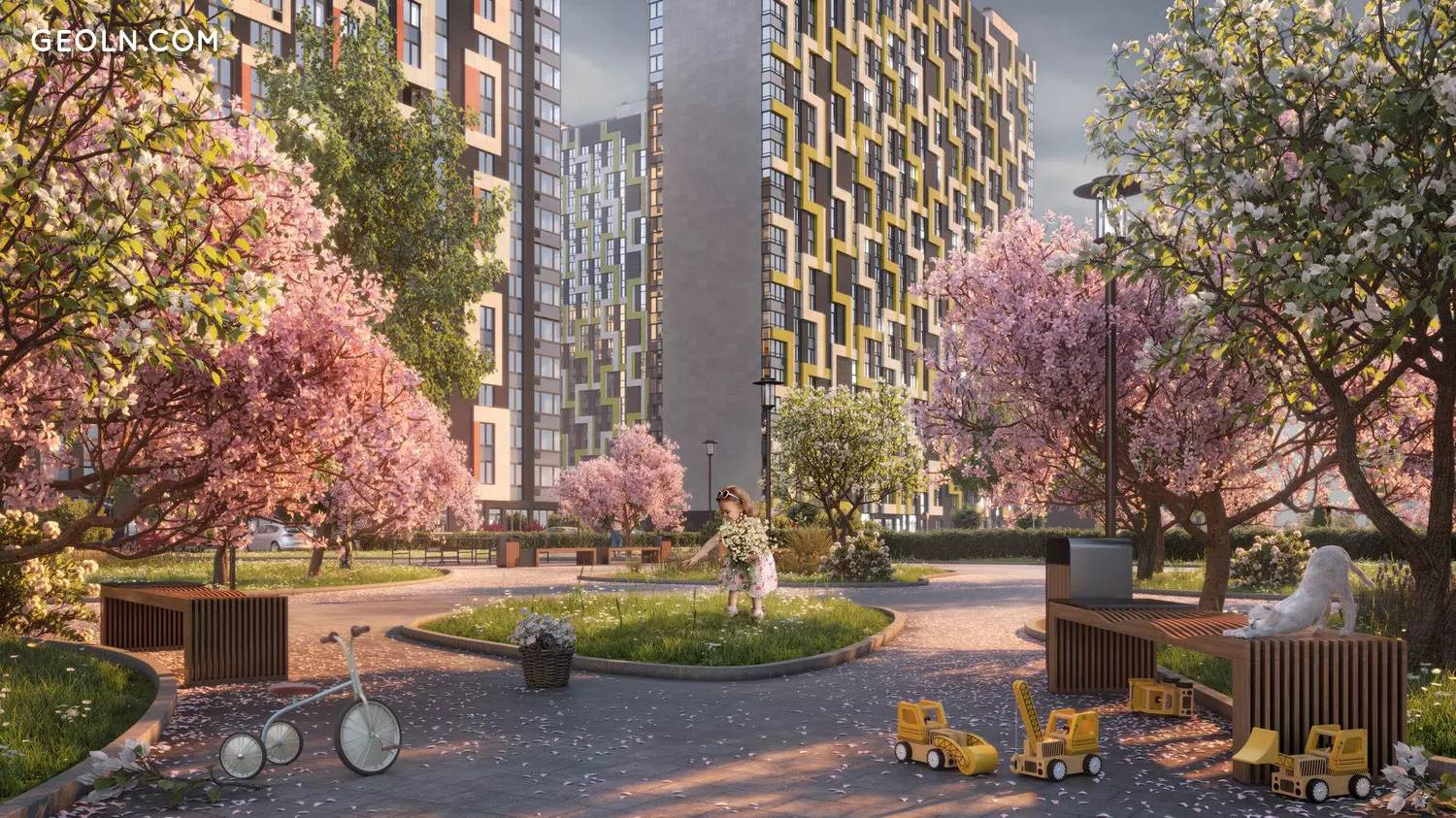 毗邻地区将得到良好的景观美化。开发商计划按照现代标准为运动场,游乐场和休闲区配备装备。将为滑旱冰或骑自行车的人创造特殊条件。还将配备人造溜冰场。